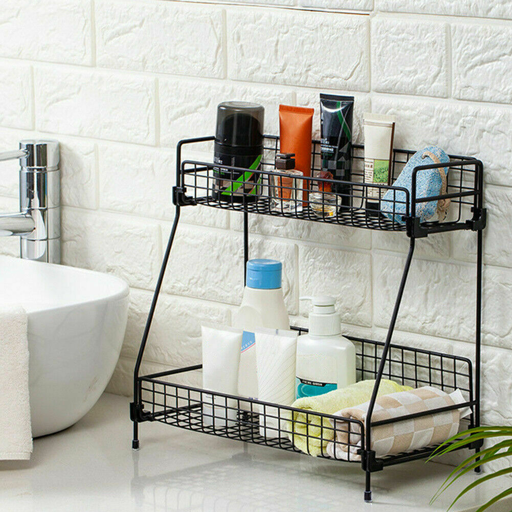 Metal Wire Basket Rack Bathroom Kitchen Storage Shelf Organizer Free Standing UK
