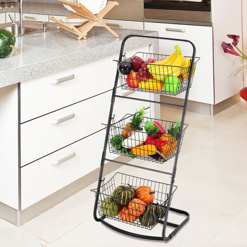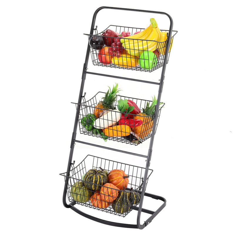 Metal Wire Kitchen Storage Baskets Stand Fruit Vegetable Food Storage Rack Shelf