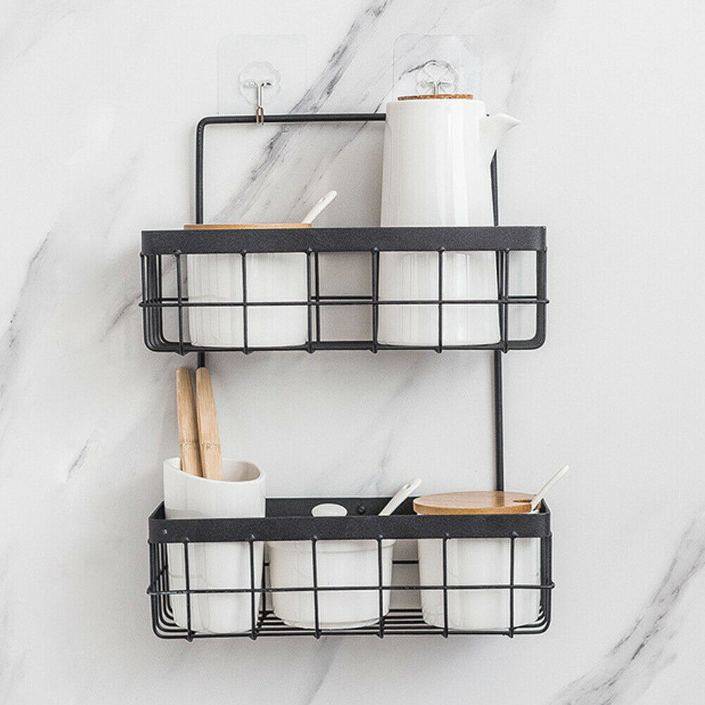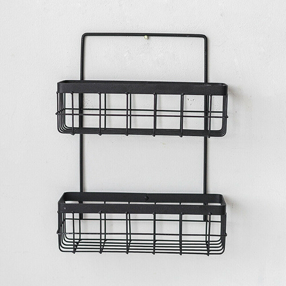Metal Wire Shelf Basket Wall Mounted Storage Unit Kitchen Bathroom Floating Rack