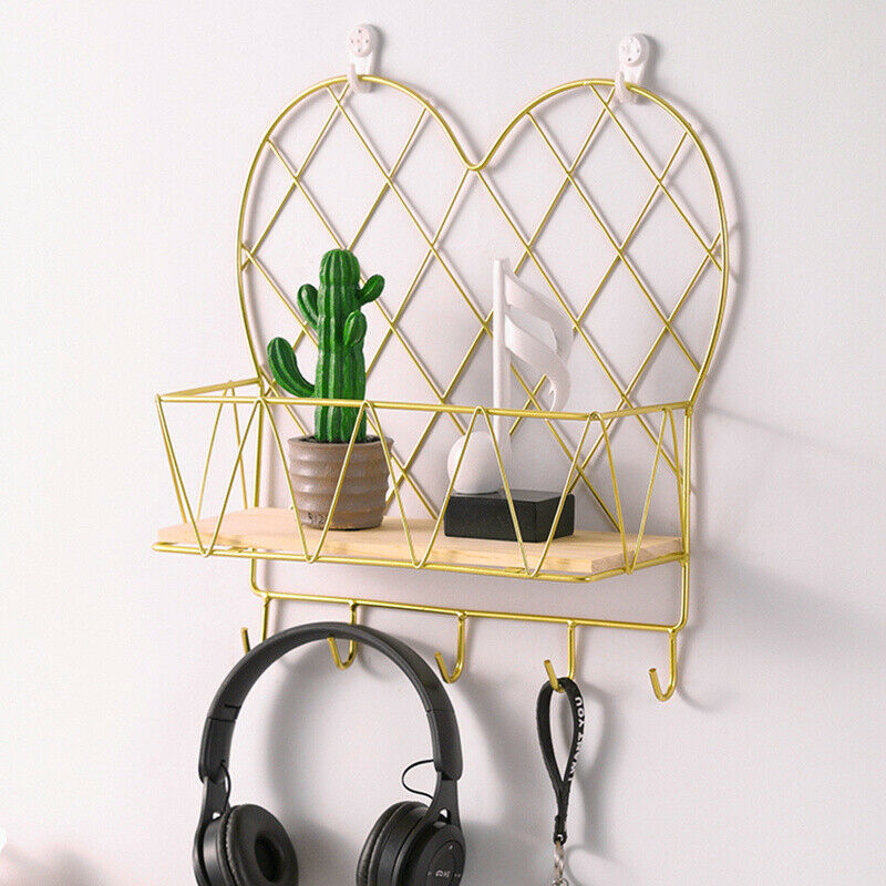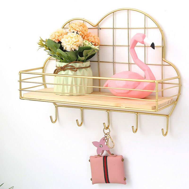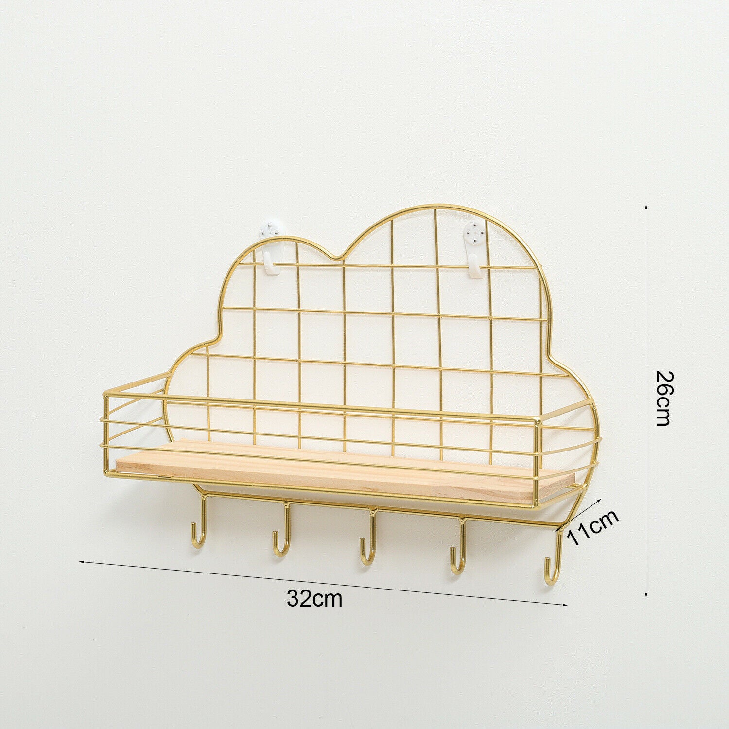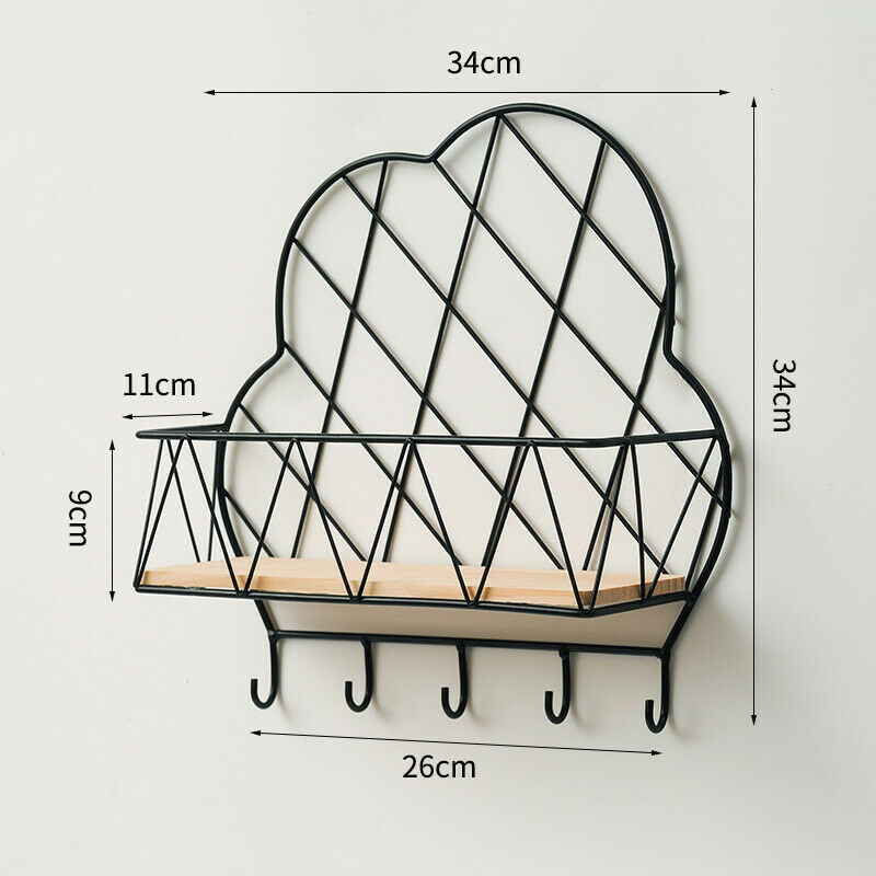 Metal Wire Shelf With Hooks Wall Mounted Hallway Storage Rack Clothes Hanger