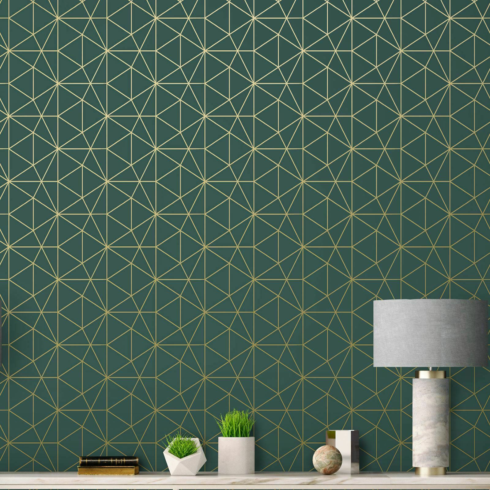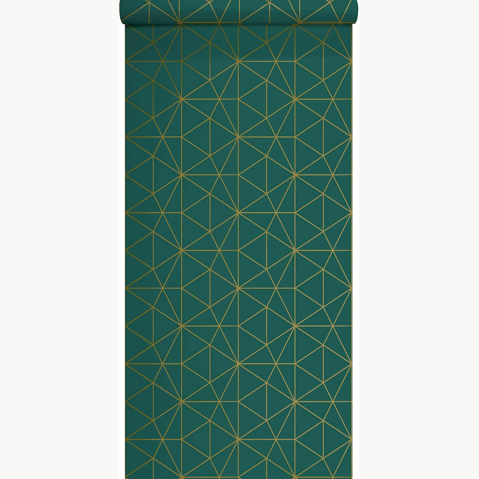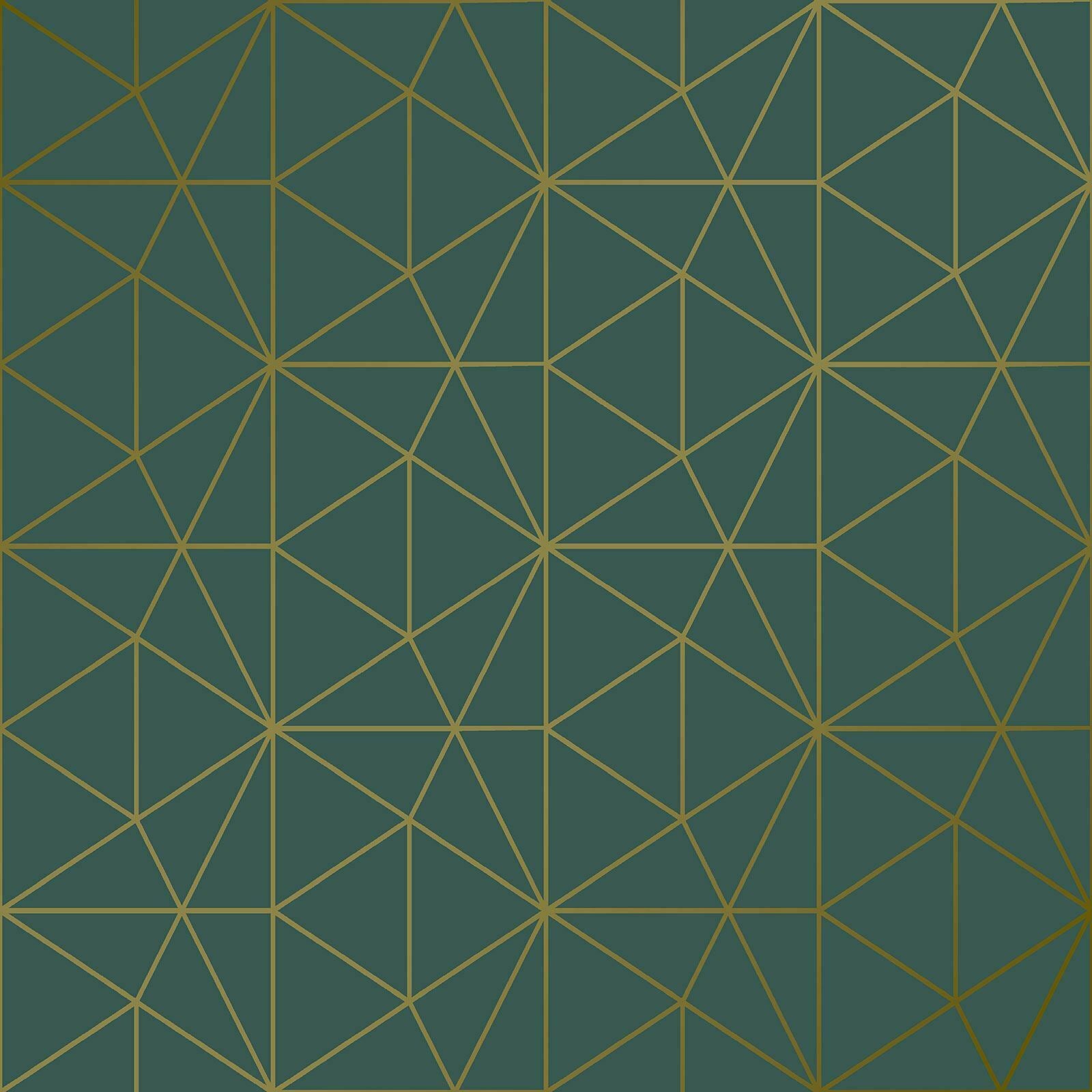 METRO PRISM WALLPAPER TRIANGLE GEOMETRIC WOW037 GOLD / EMERALD GREEN LUXURY