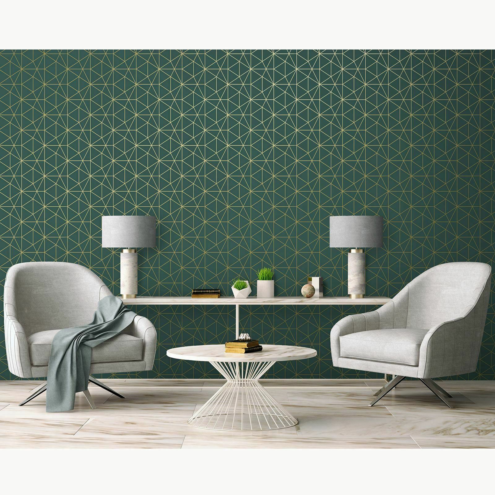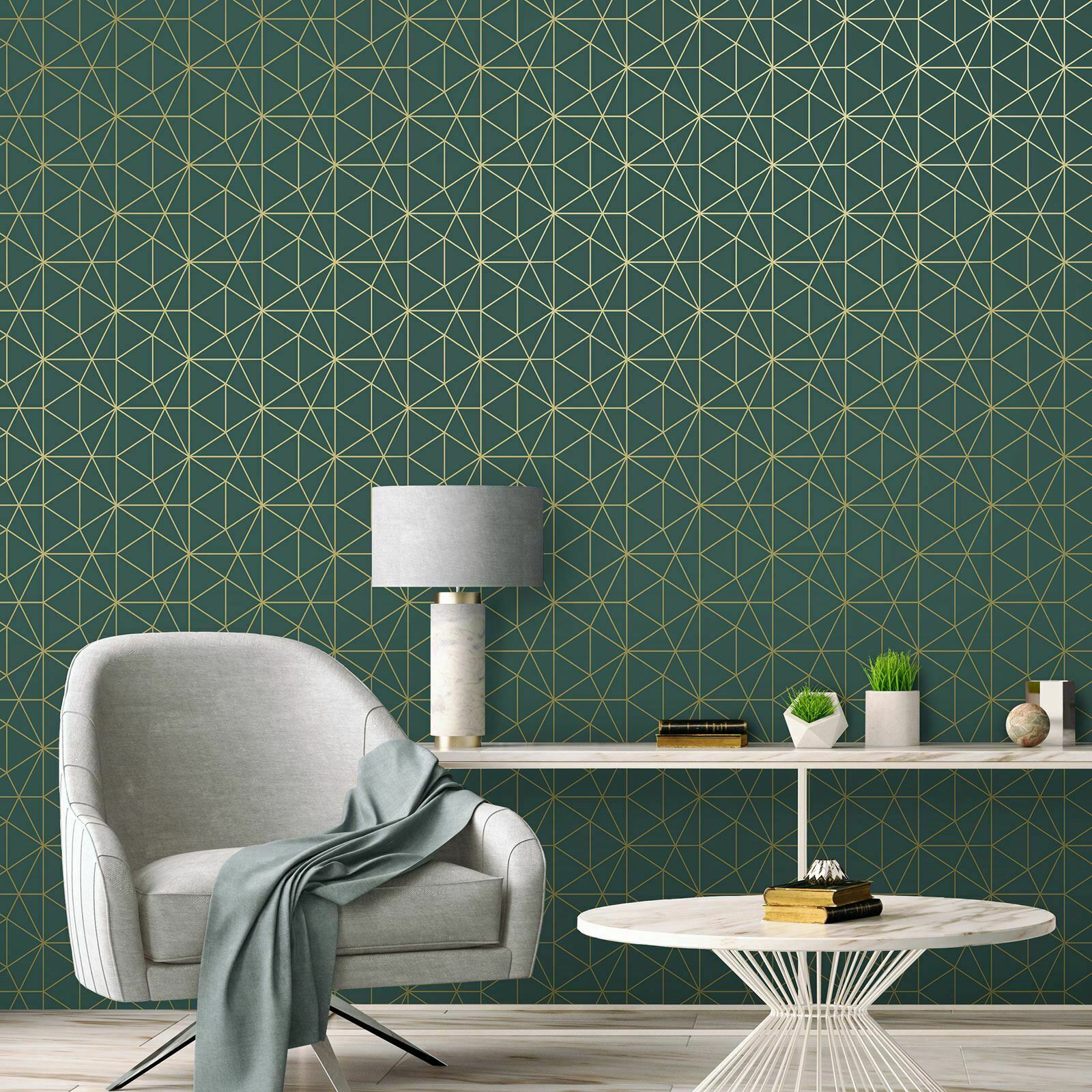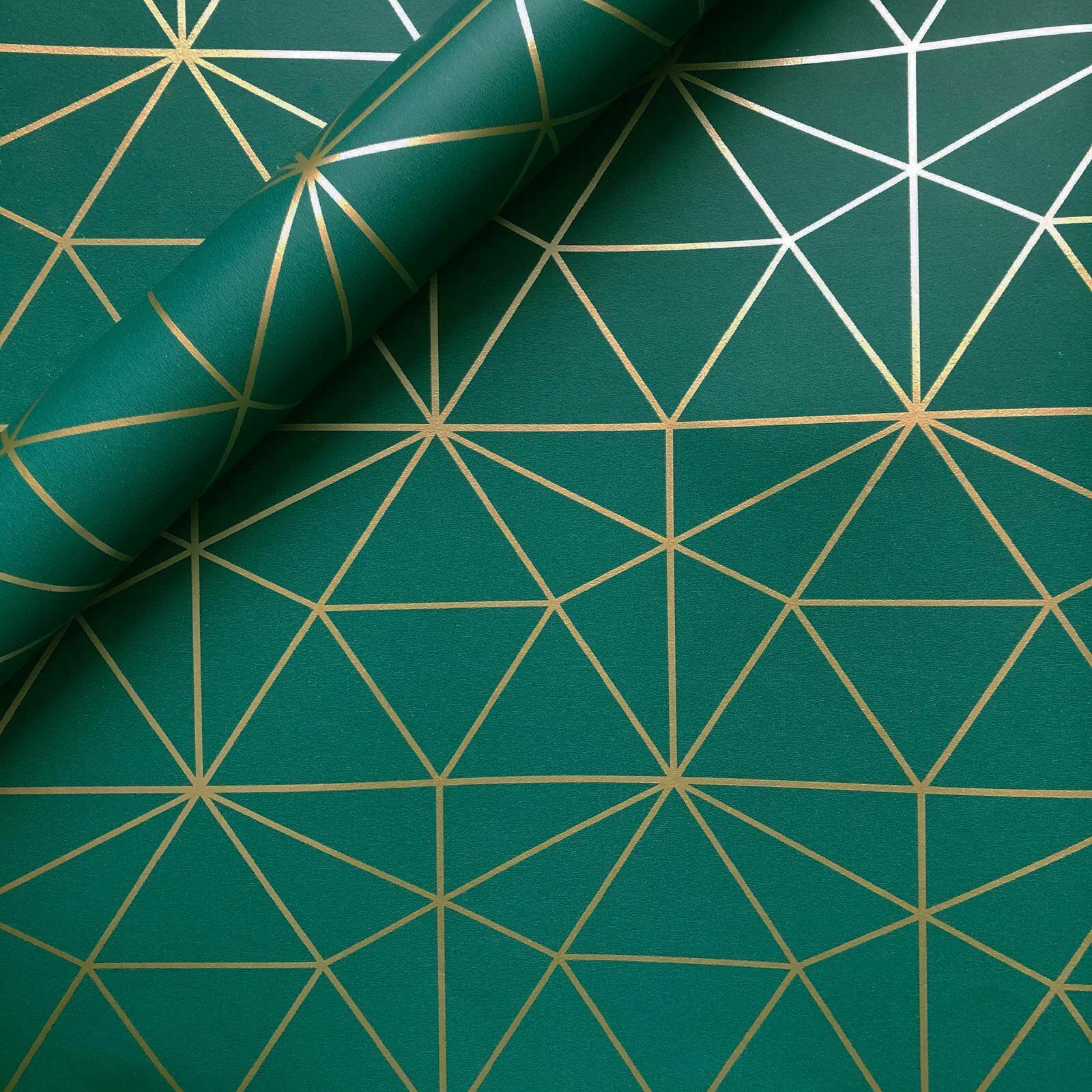 METRO PRISM WALLPAPER TRIANGLE GEOMETRIC WOW037 GOLD / EMERALD GREEN LUXURY