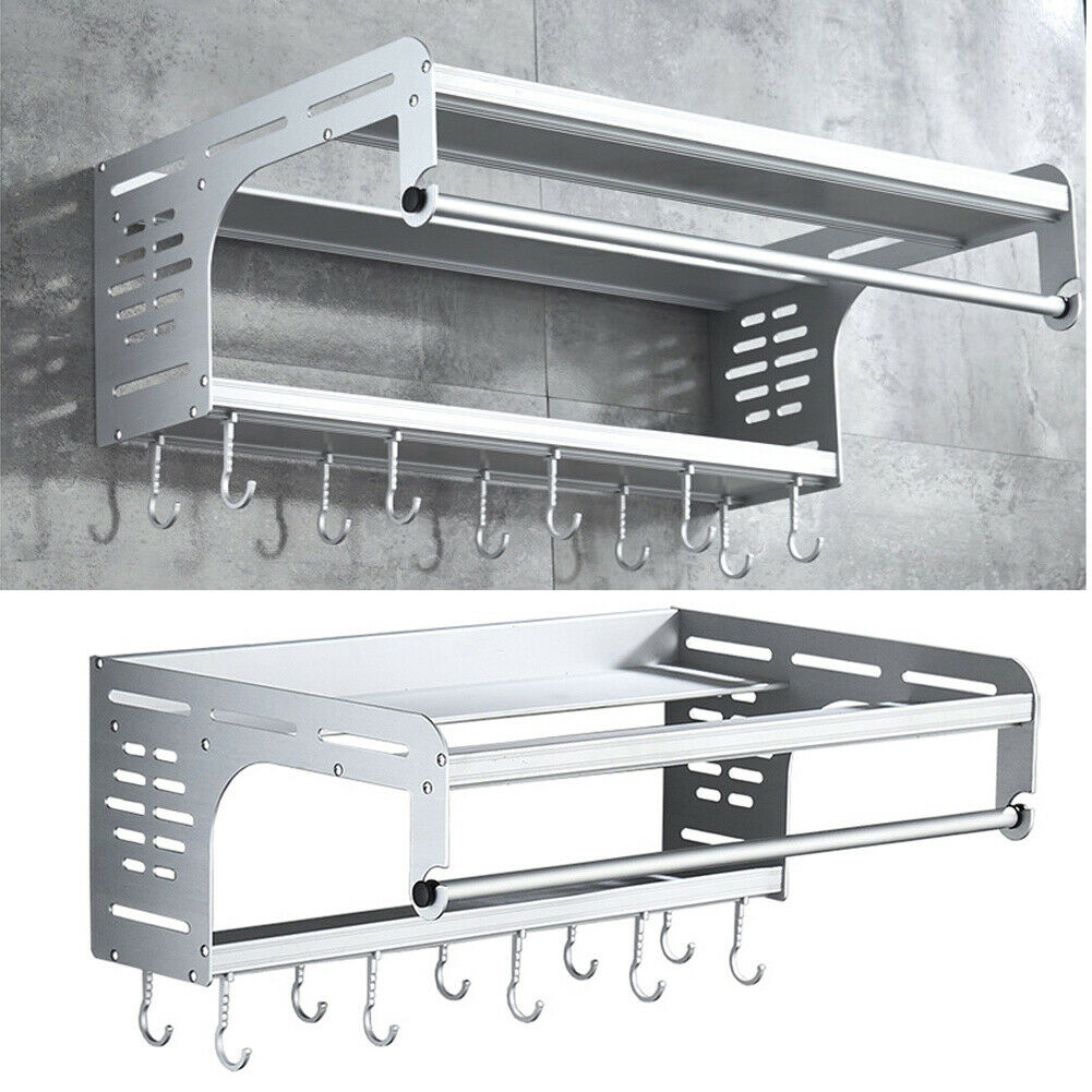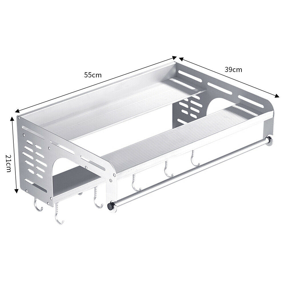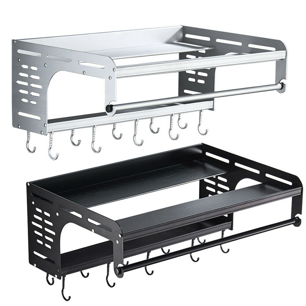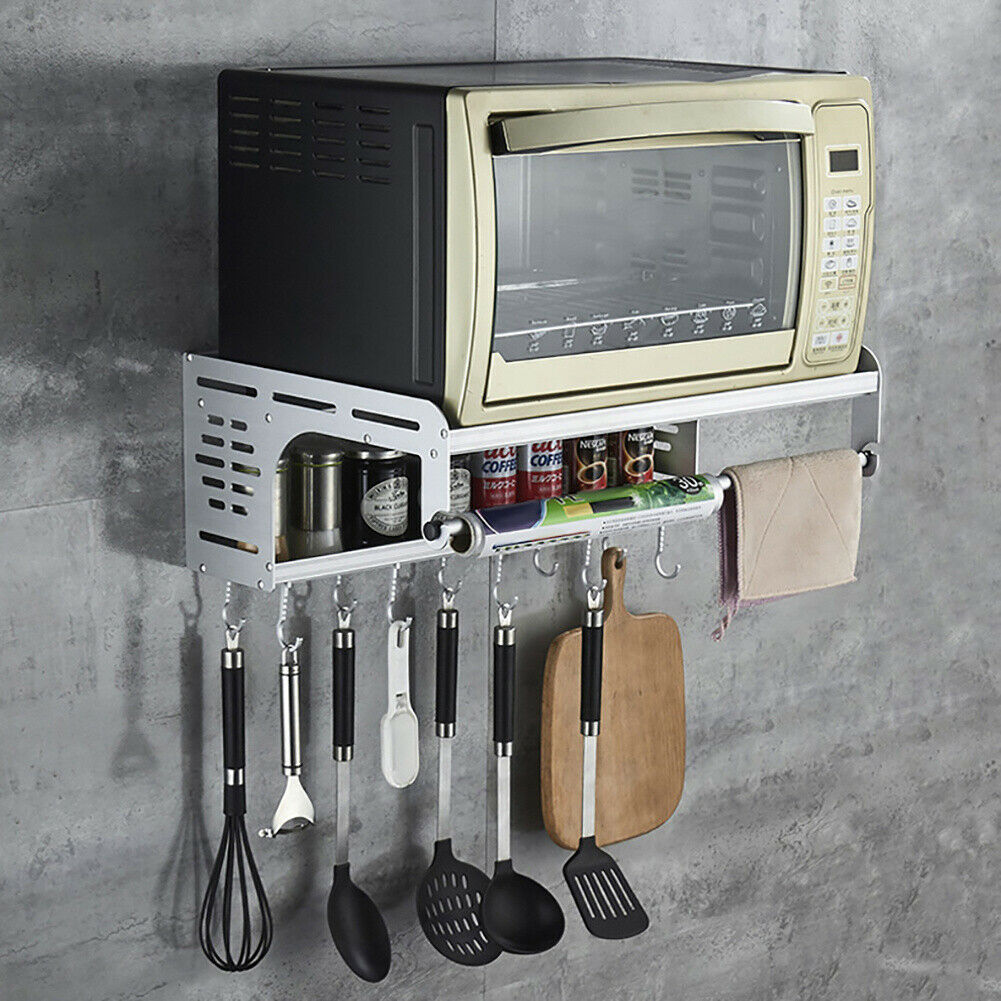 Microwave Oven Rack Wall Mounted 2 Tiers Storage Shelf Organizer Kitchen Holder