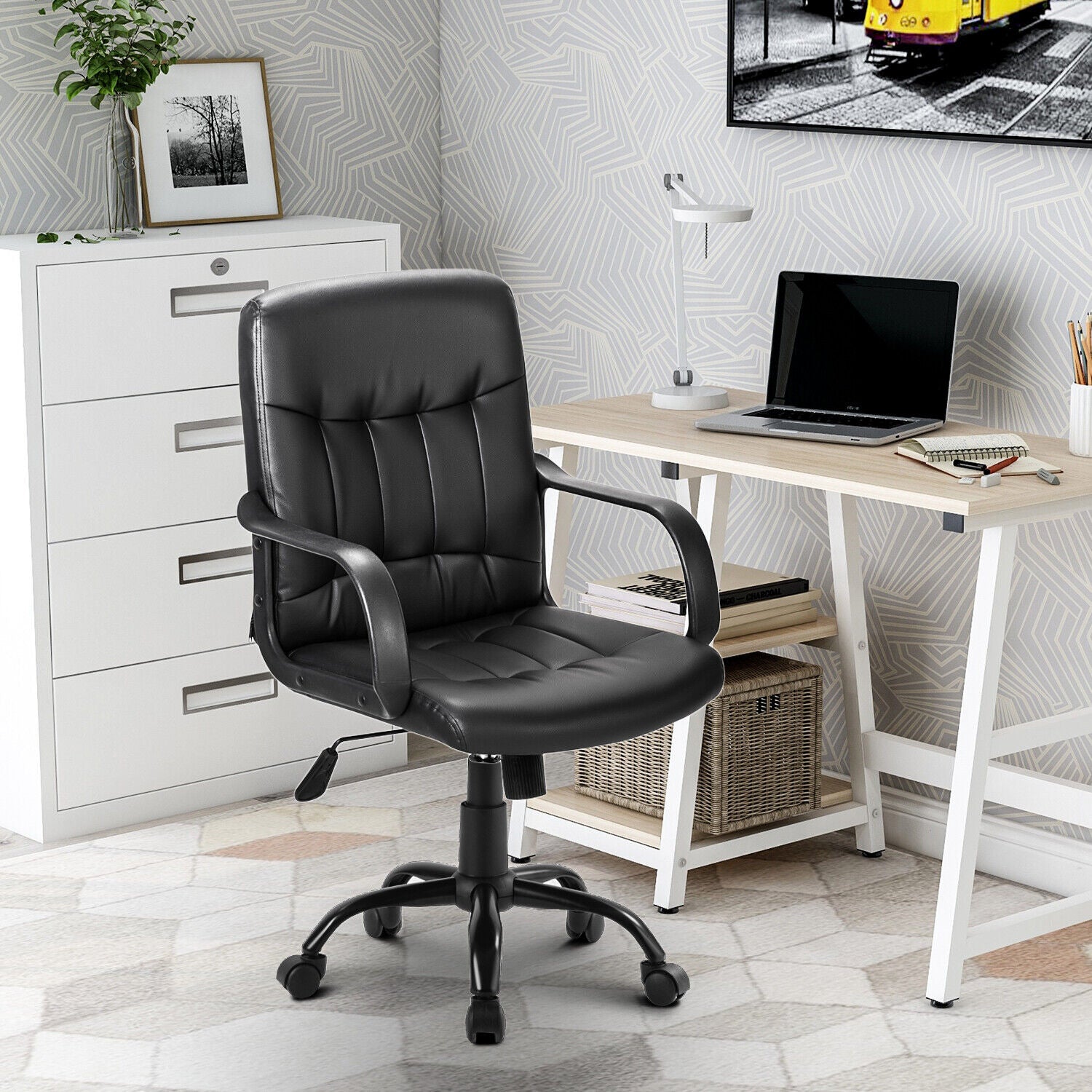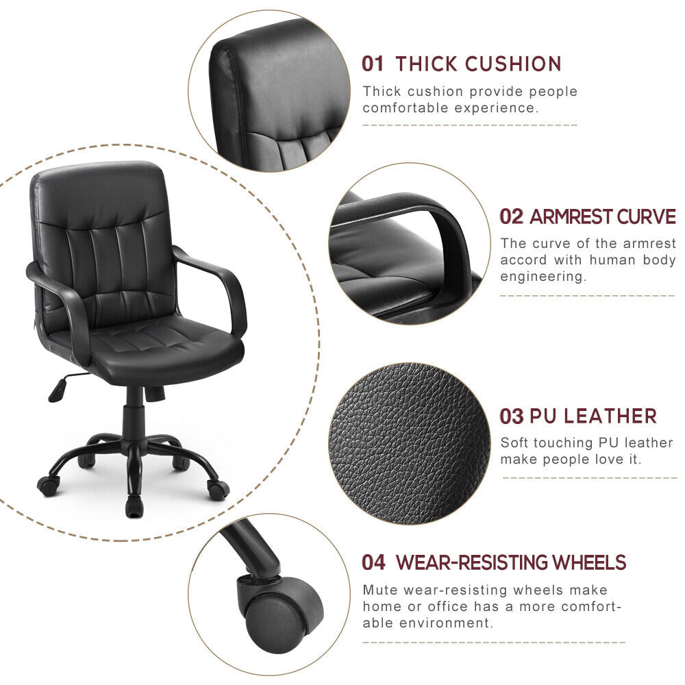 Mid Back PU Leather Executive Ergonomic Swivel Office Chair Computer Desk Chair