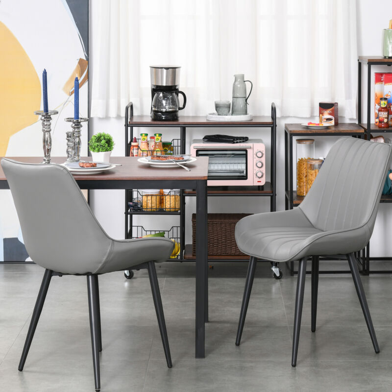 Mid Century Dining Chairs Set of 2 PU Leather Side Chairs Seat Metal Legs