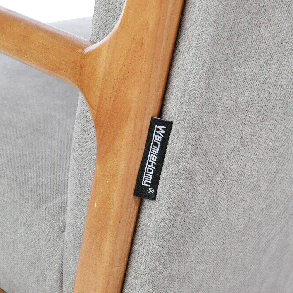 Mid-Century Linen Fabric Armchair Padded Seat Chair Accent Wood Corner Sofa Grey