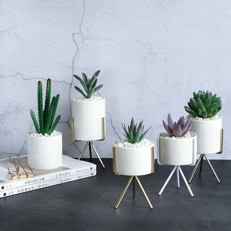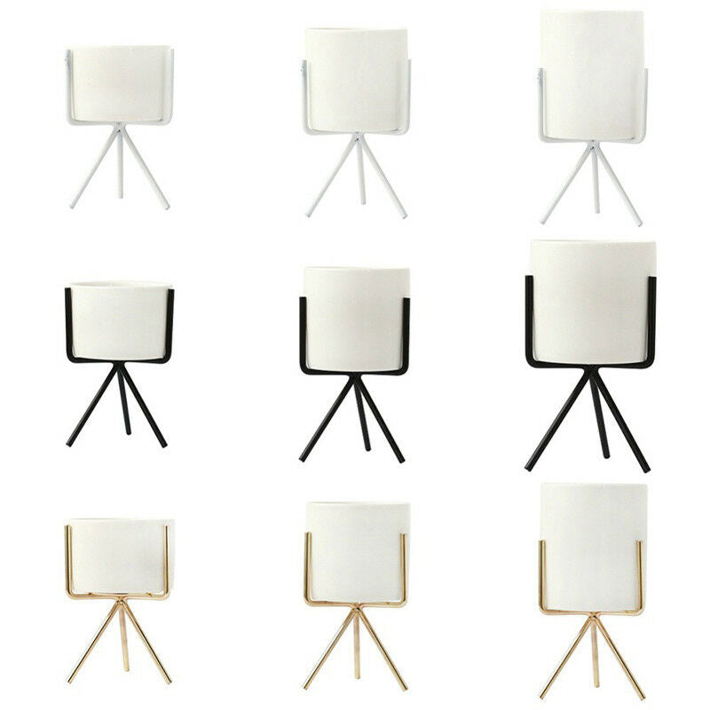 Mini Geometric Flower Pot with Rack Holder Vase Plant Flower Stand Home Desk UK