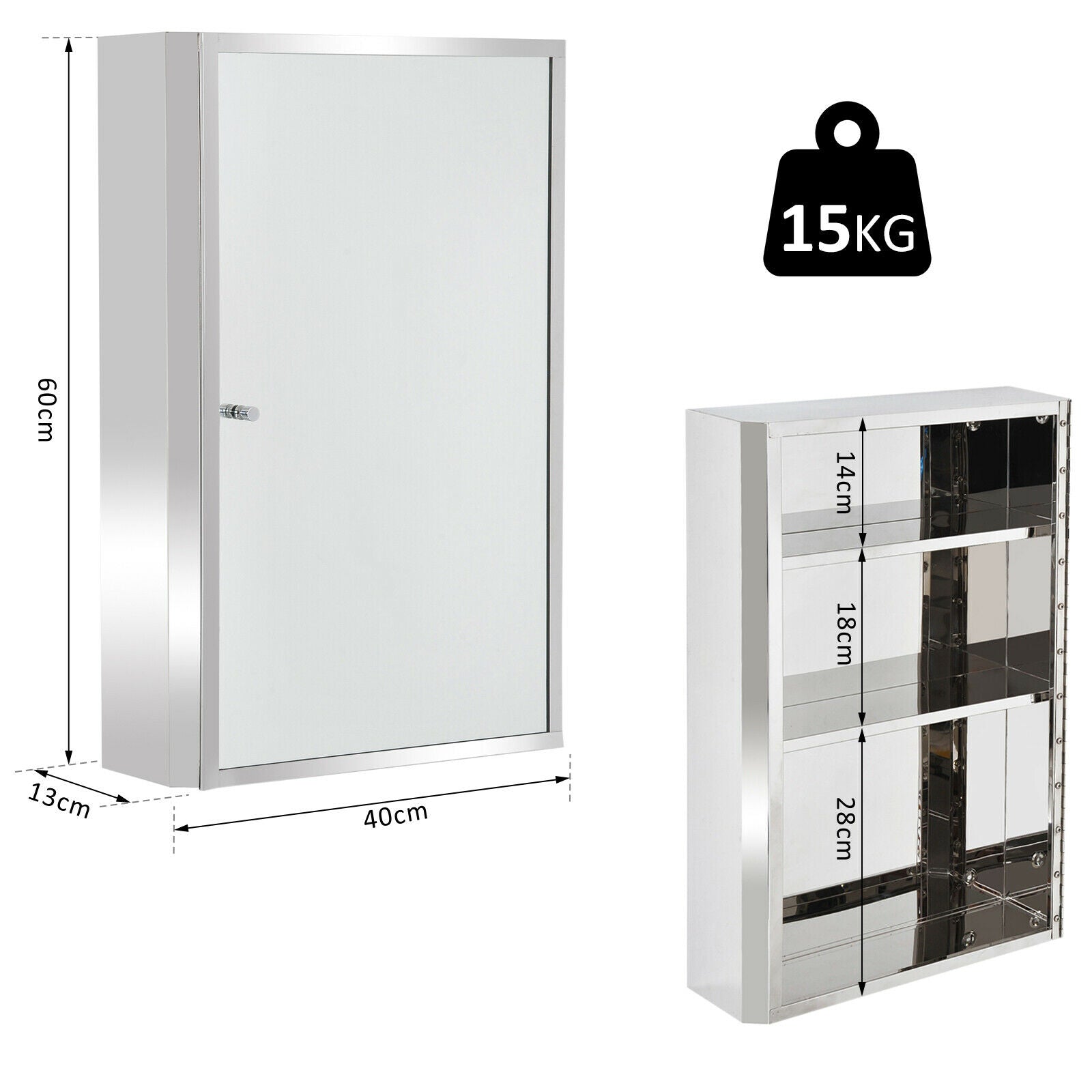Mirror Cabinet Shelves Bathroom Storage Stainless Steel Wall Cabinet