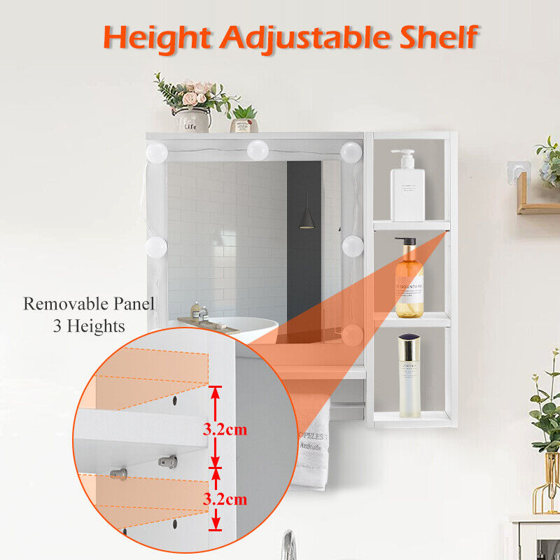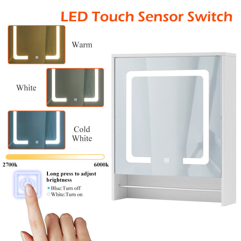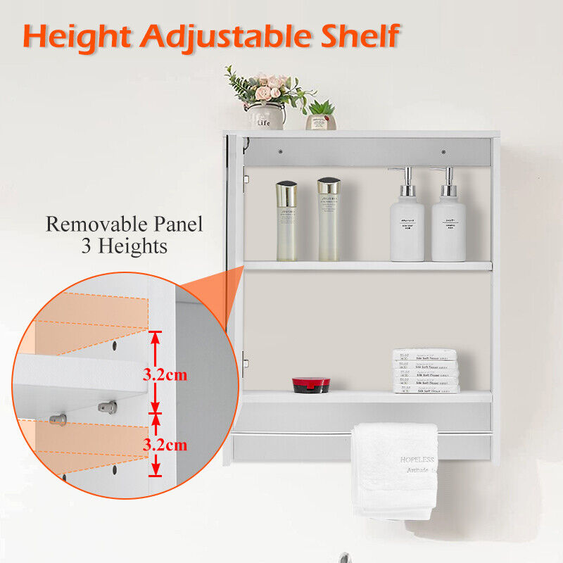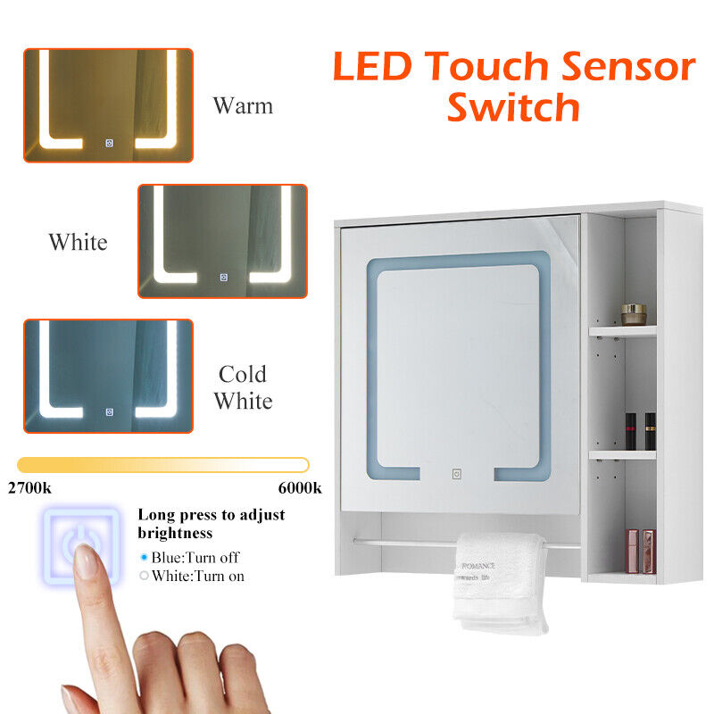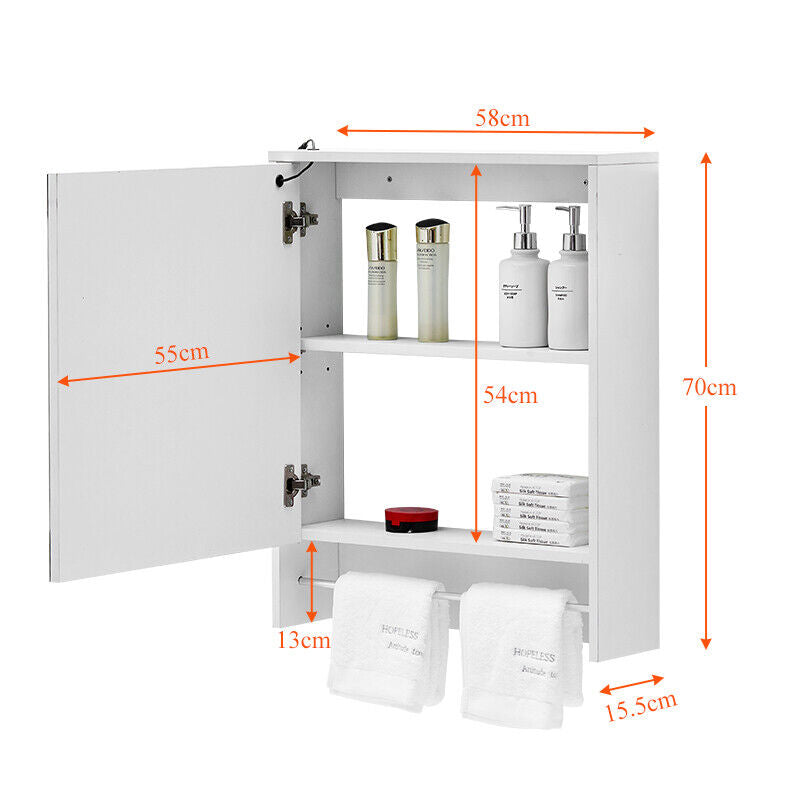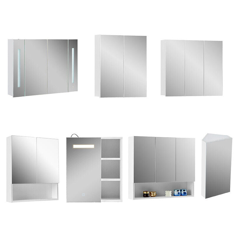 - Mirrored Bathroom Cabinet LED White 1/2/3 Doors Mounted Cupboard Wall Mounted