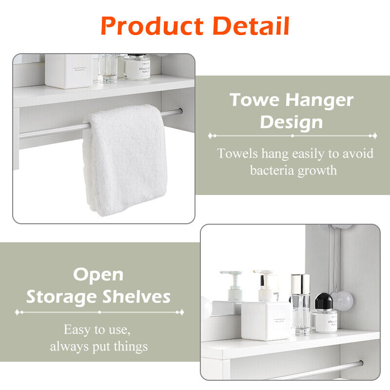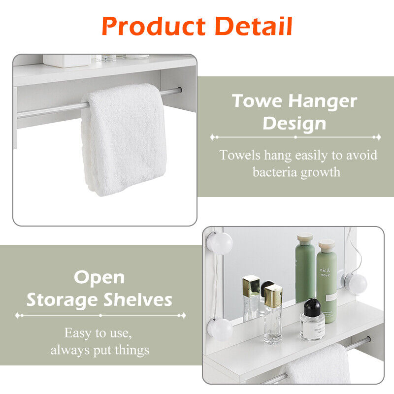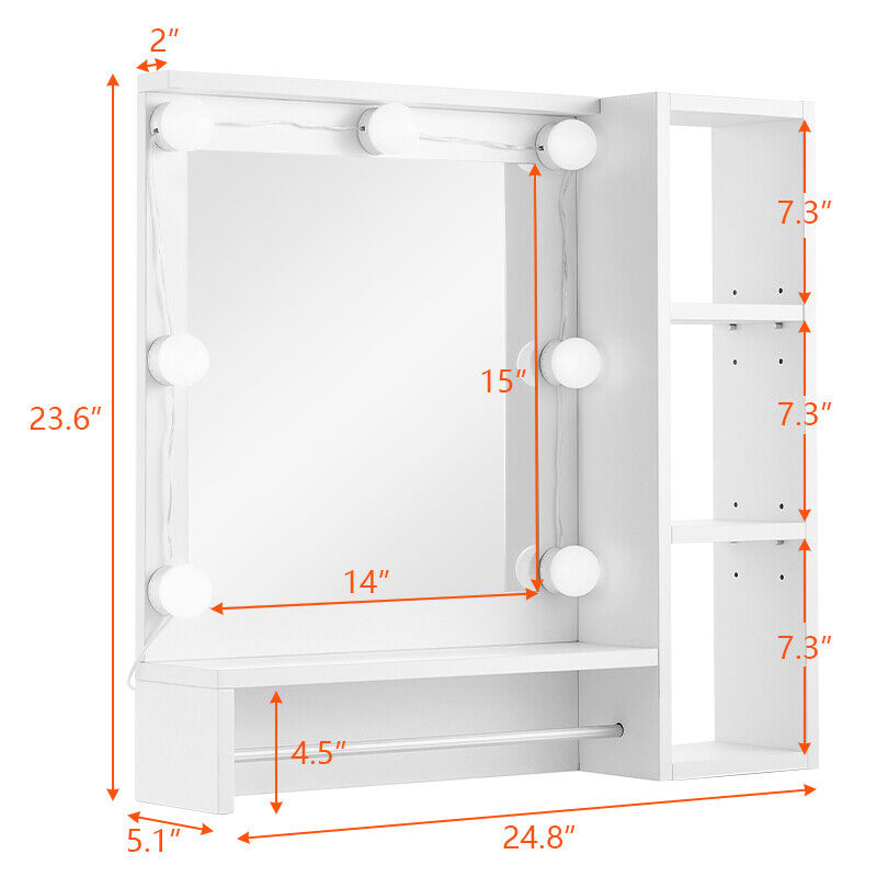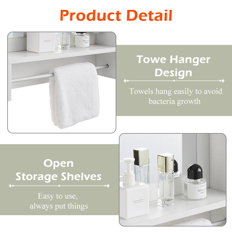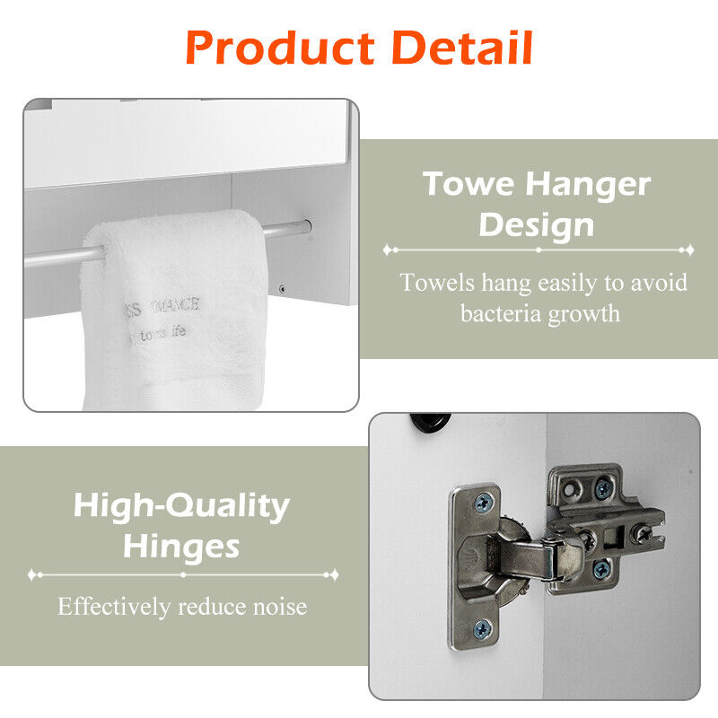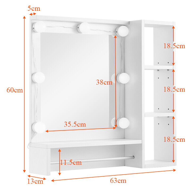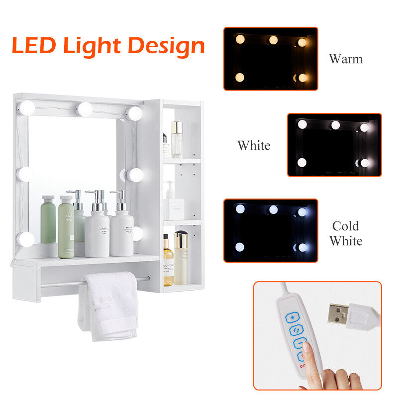 - Mirrored Bathroom Cabinet LED White 1/2/3 Doors Mounted Cupboard Wall Mounted