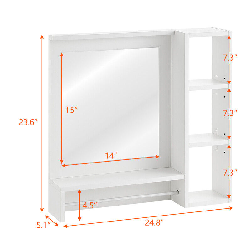 Features Flat Pack, Adjustable Shelves, Mirror Included