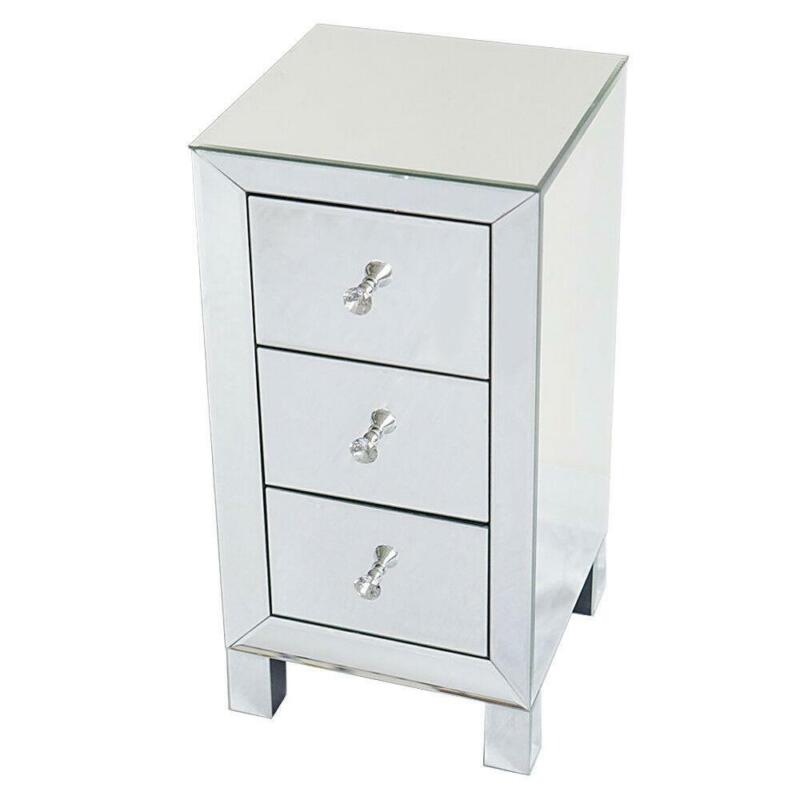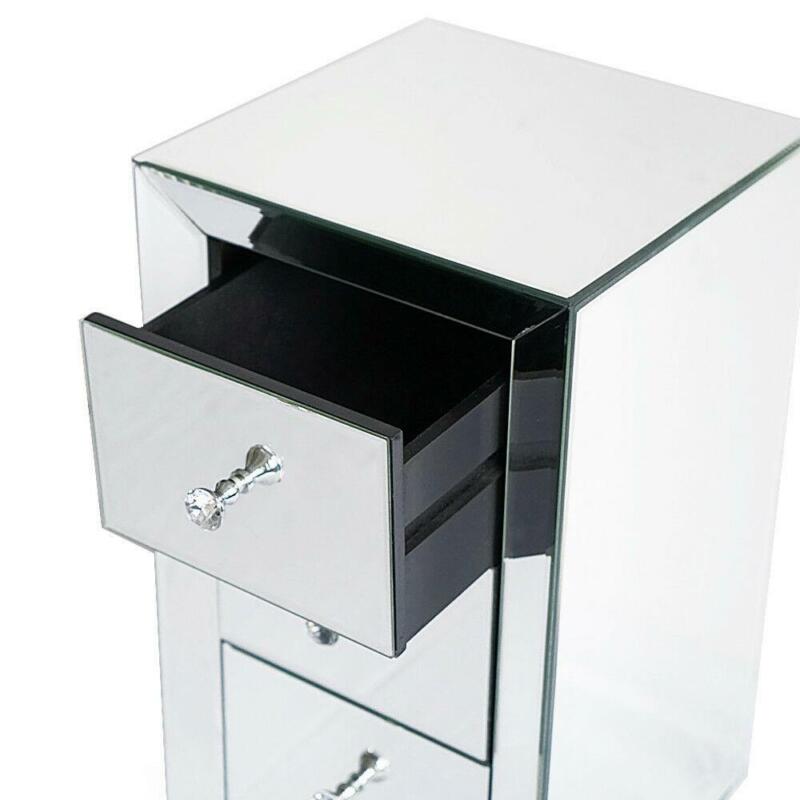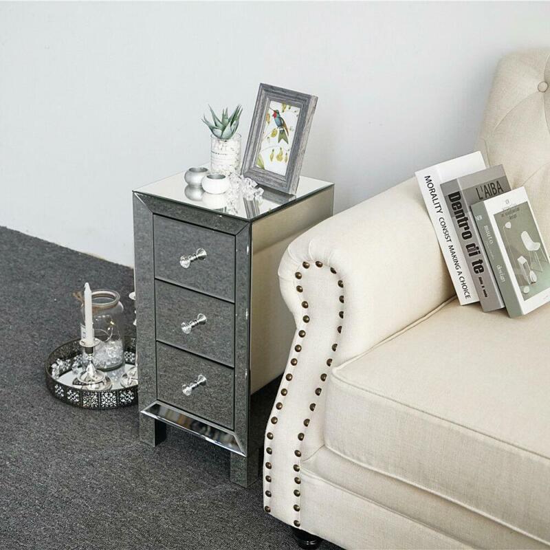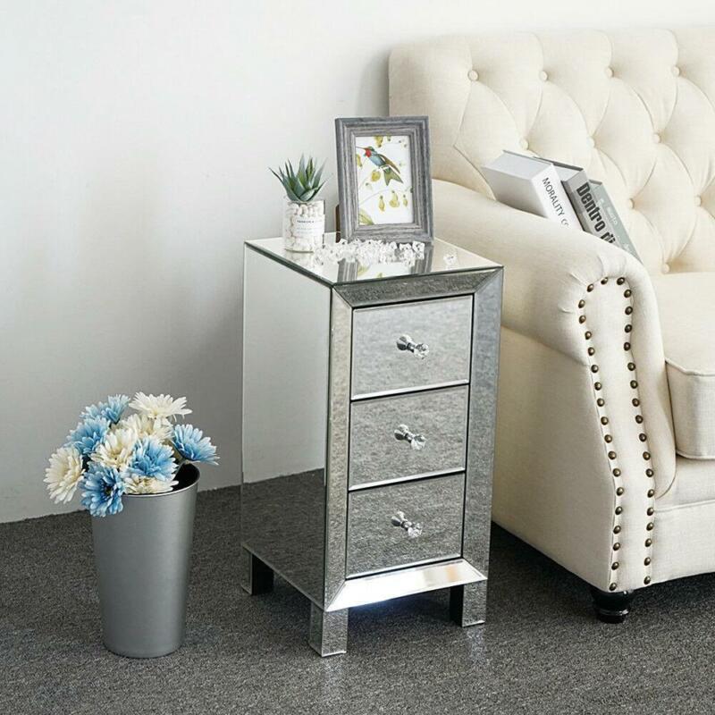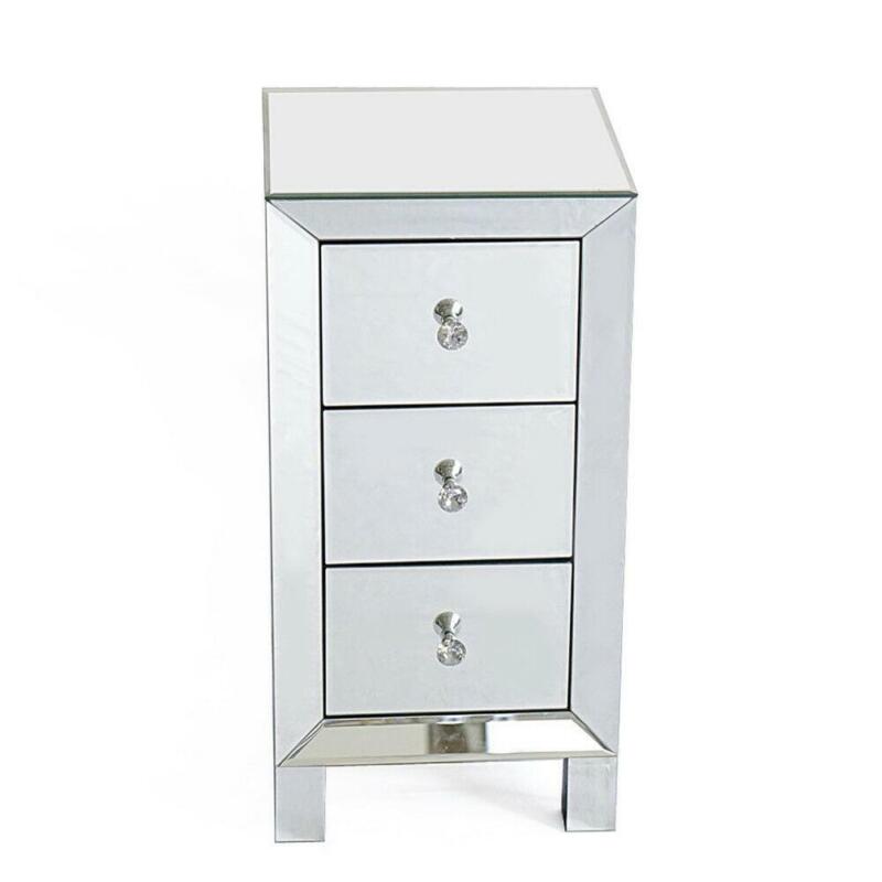 Mirrored Glass Bedside Table Cabinet 3 Drawer Crystal Handles Bedroom Nightstand