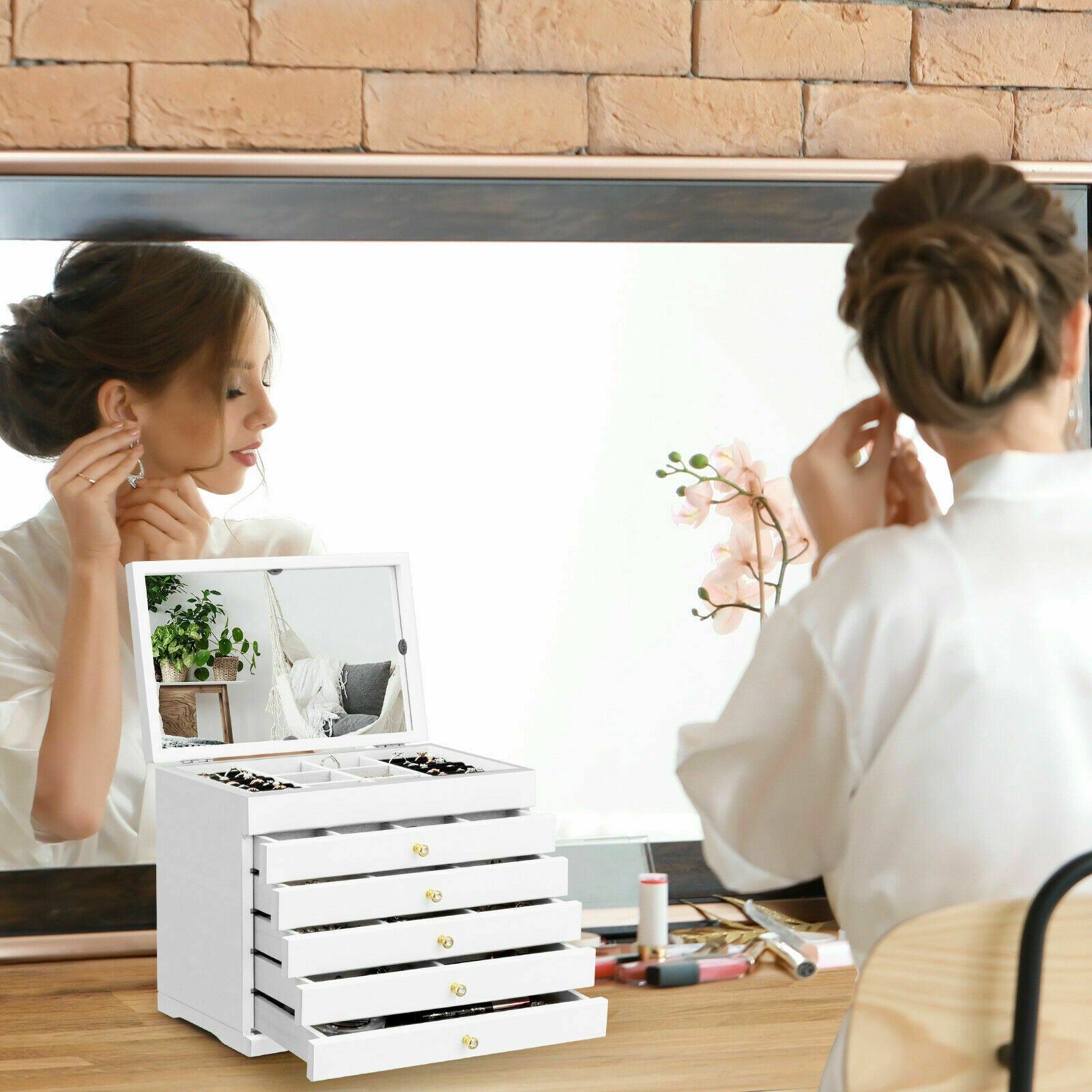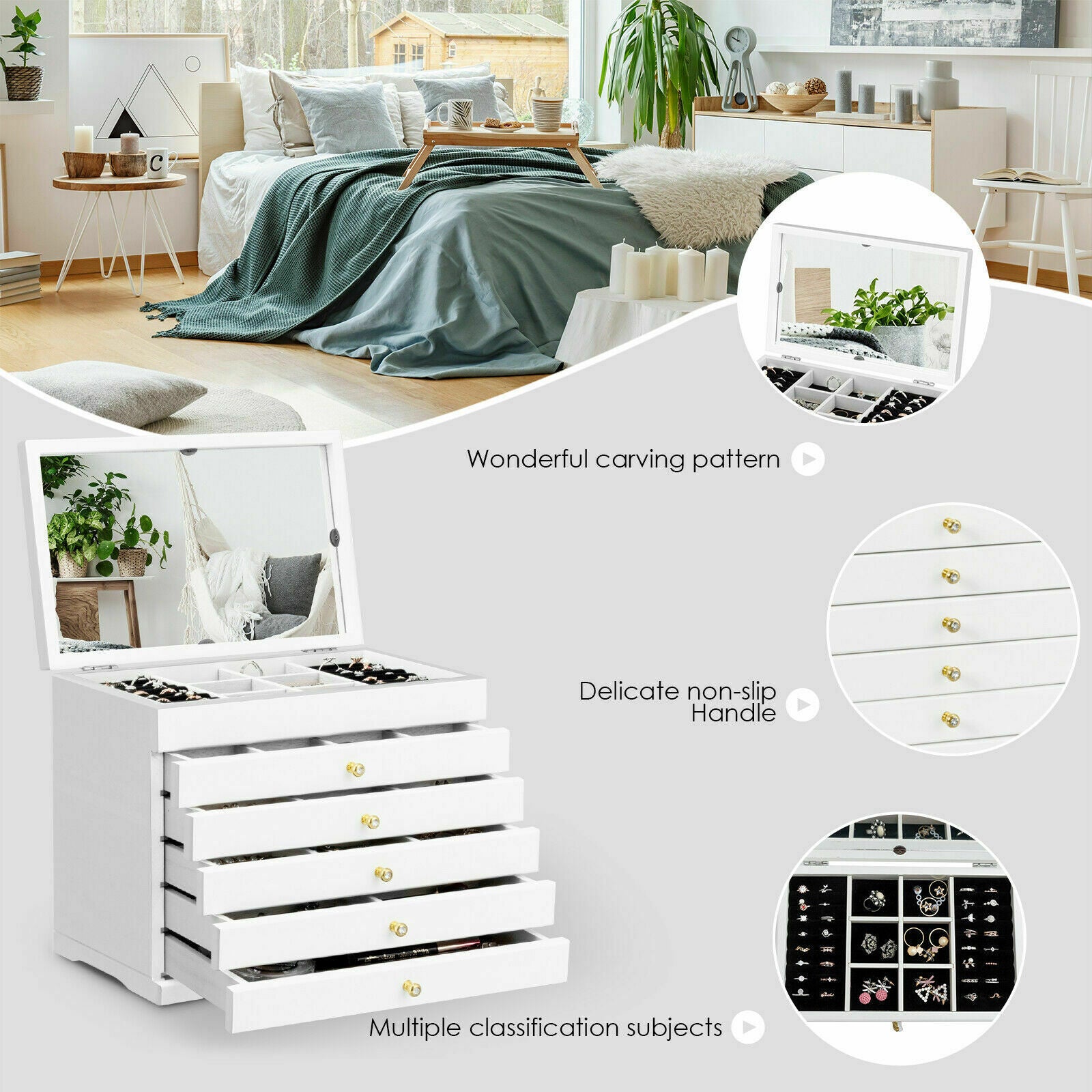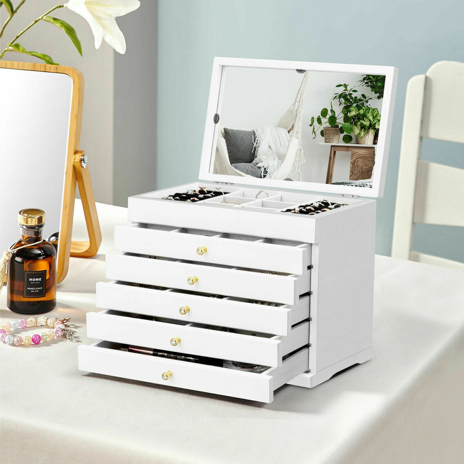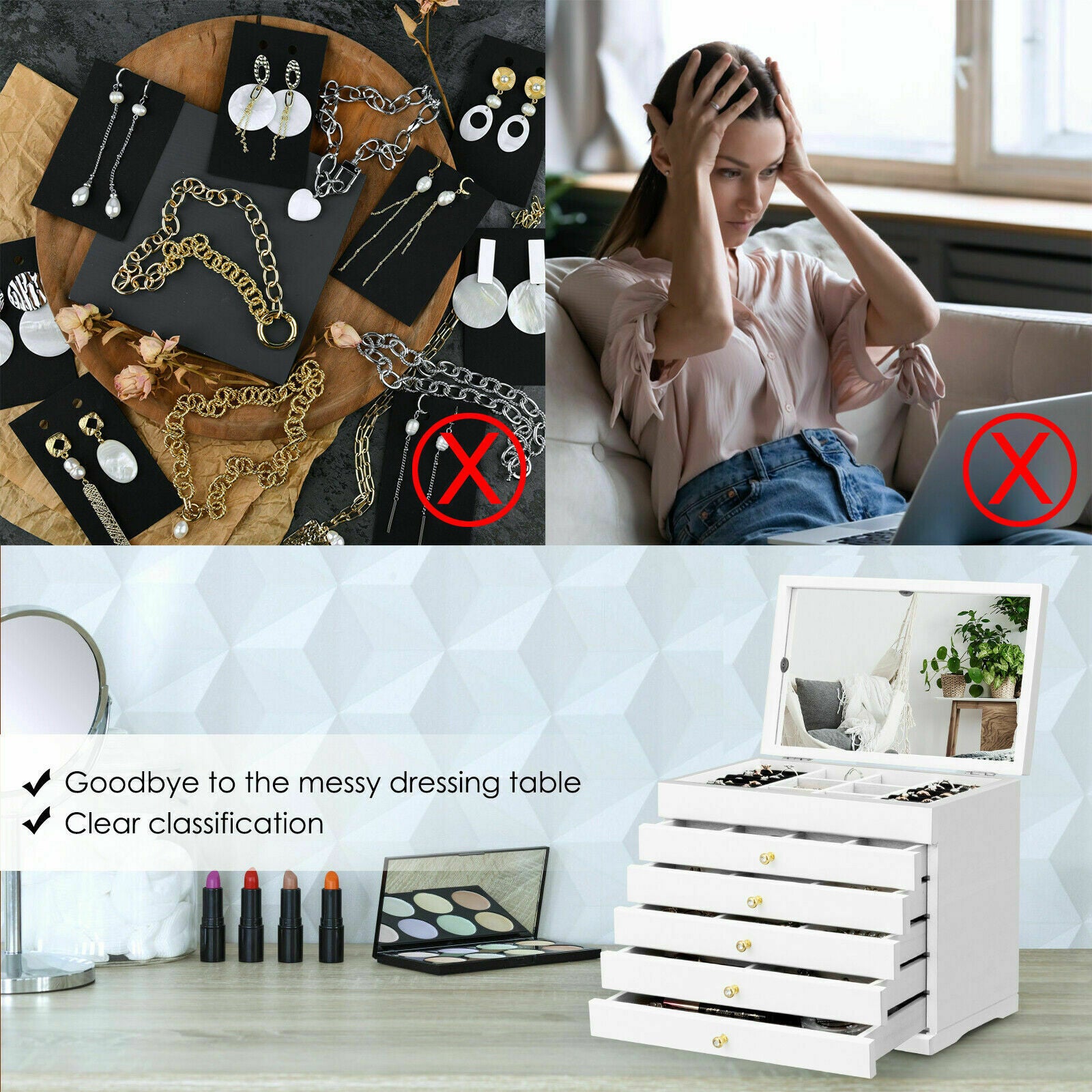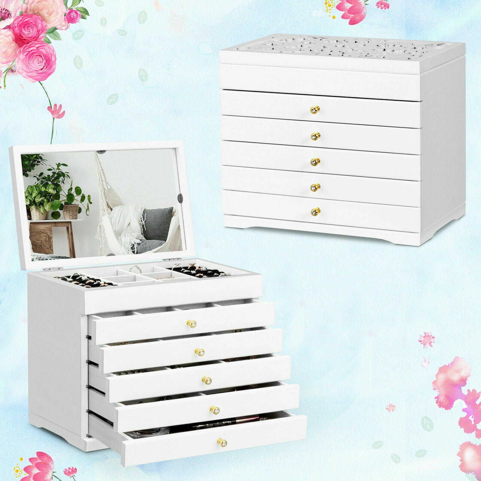Mirrored Wooden Jewellery Box Chest Rings Necklaces Storage Organiser Cabinet