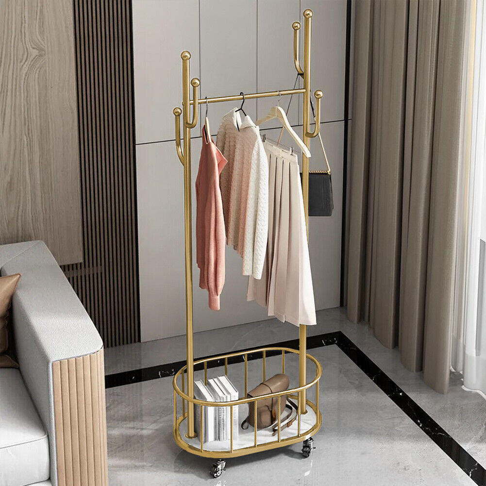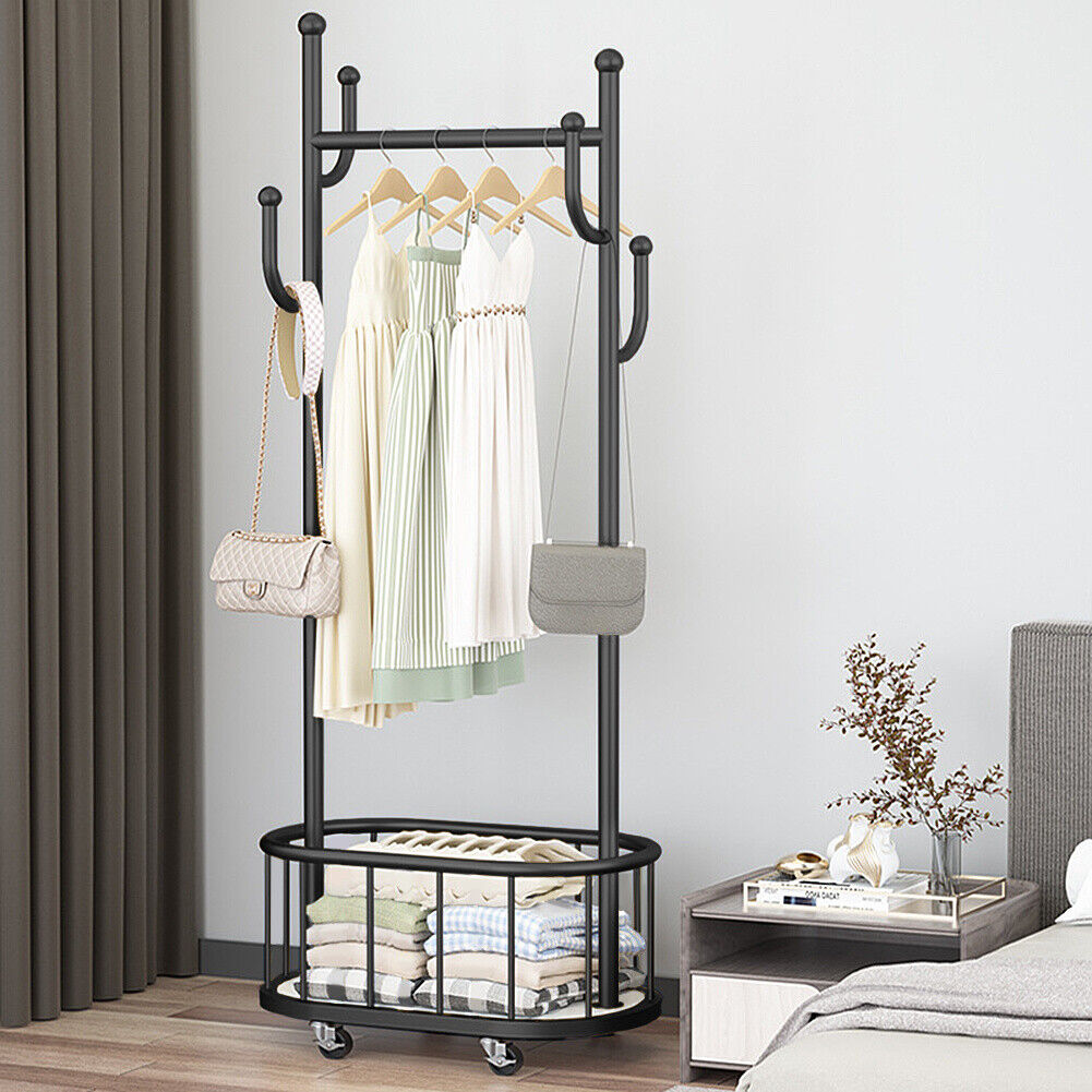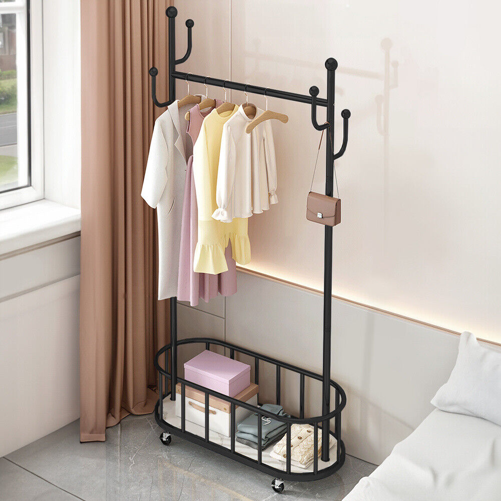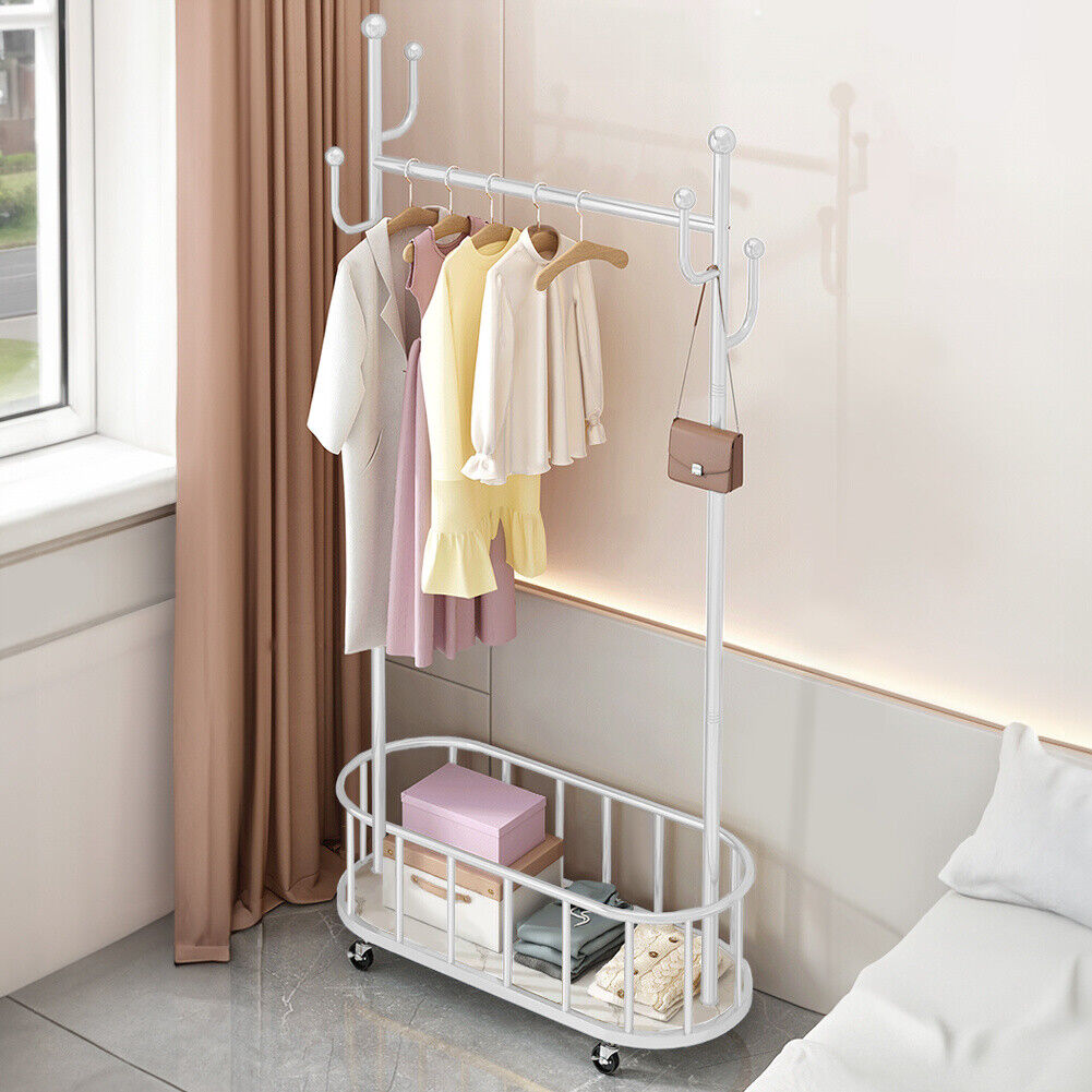 Mobile Clothes Coat Rail Garment Dress Hanging Rack Shelf Storage Display Stand