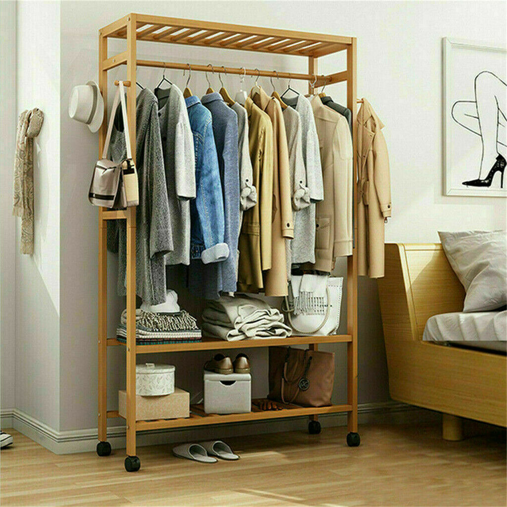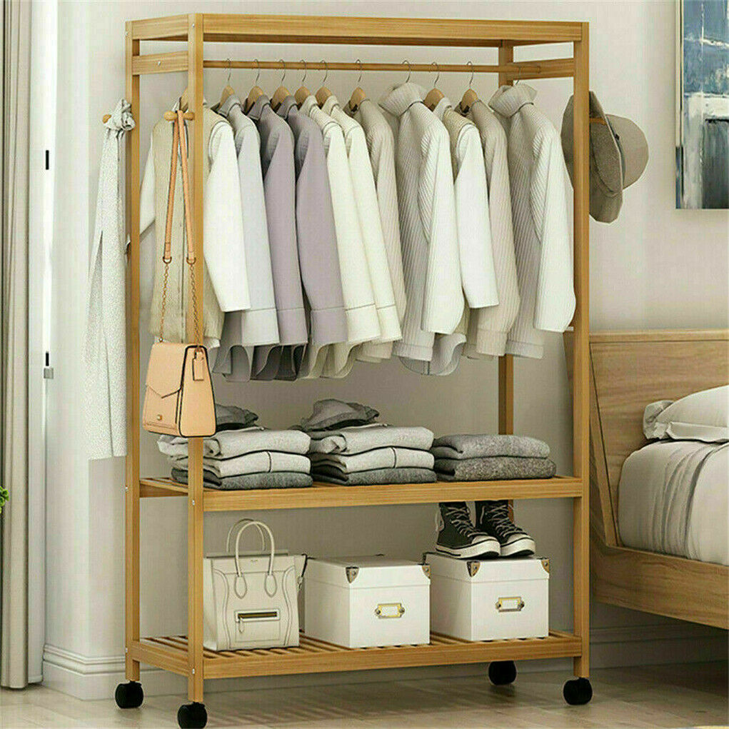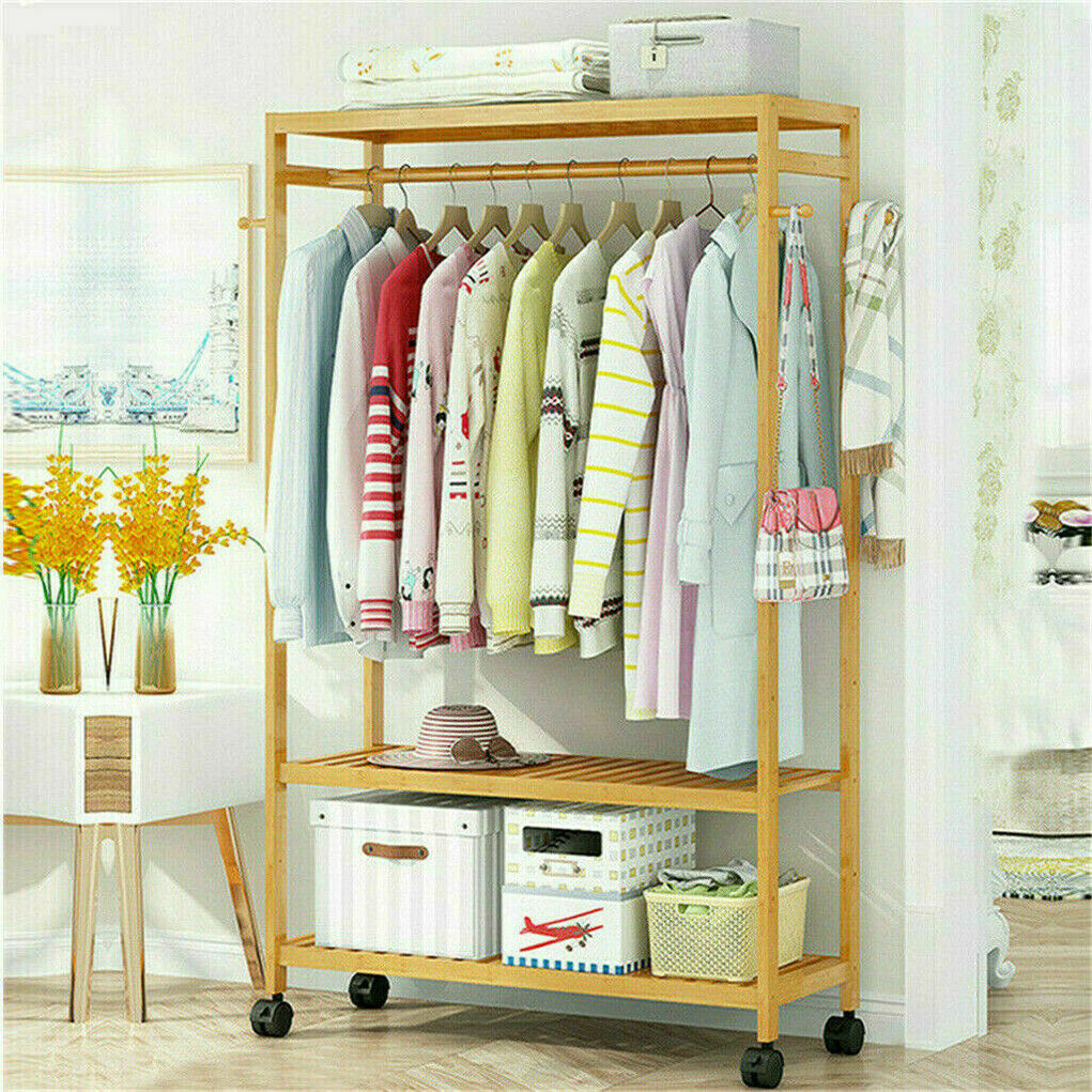 Mobile Clothes Rail Garment Dress Hanging Display Stand Shoe Rack Storage Shelf