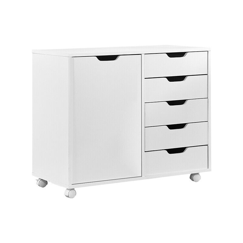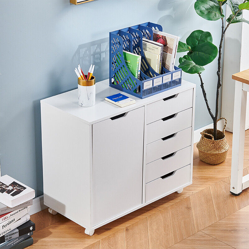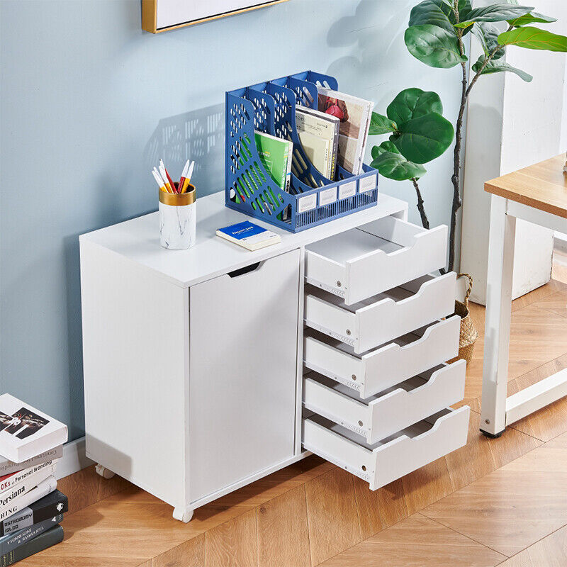 Mobile Filing 5 Drawer Pedestal Cabinet File Storage with Door Home Office White