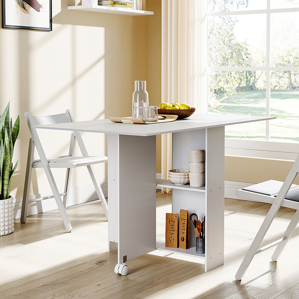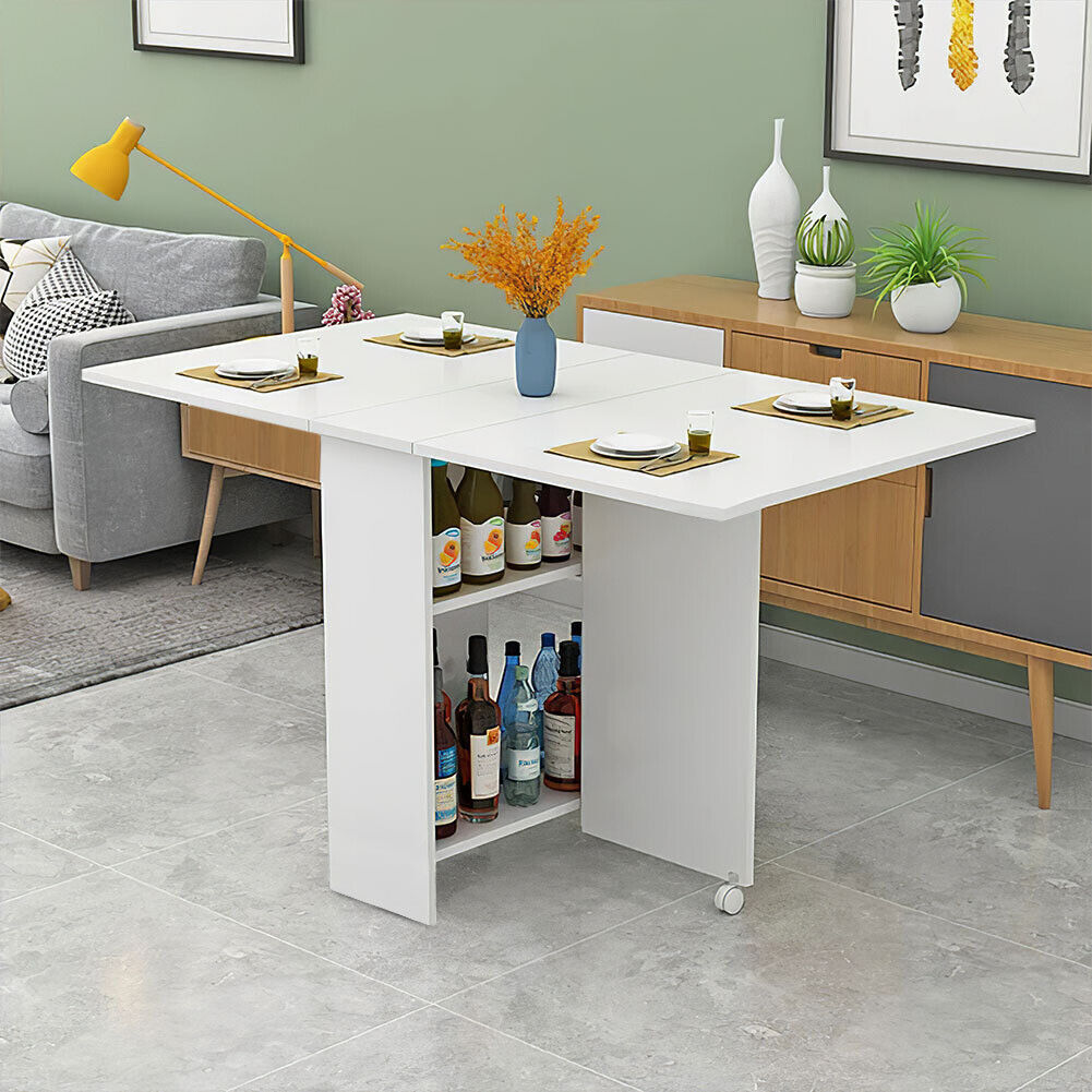 Drop Leaf, Extendable, Foldable, Table Set, Wheels, With Storage, With Storage Shelf Rack