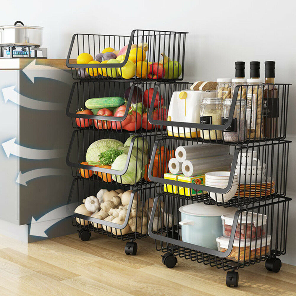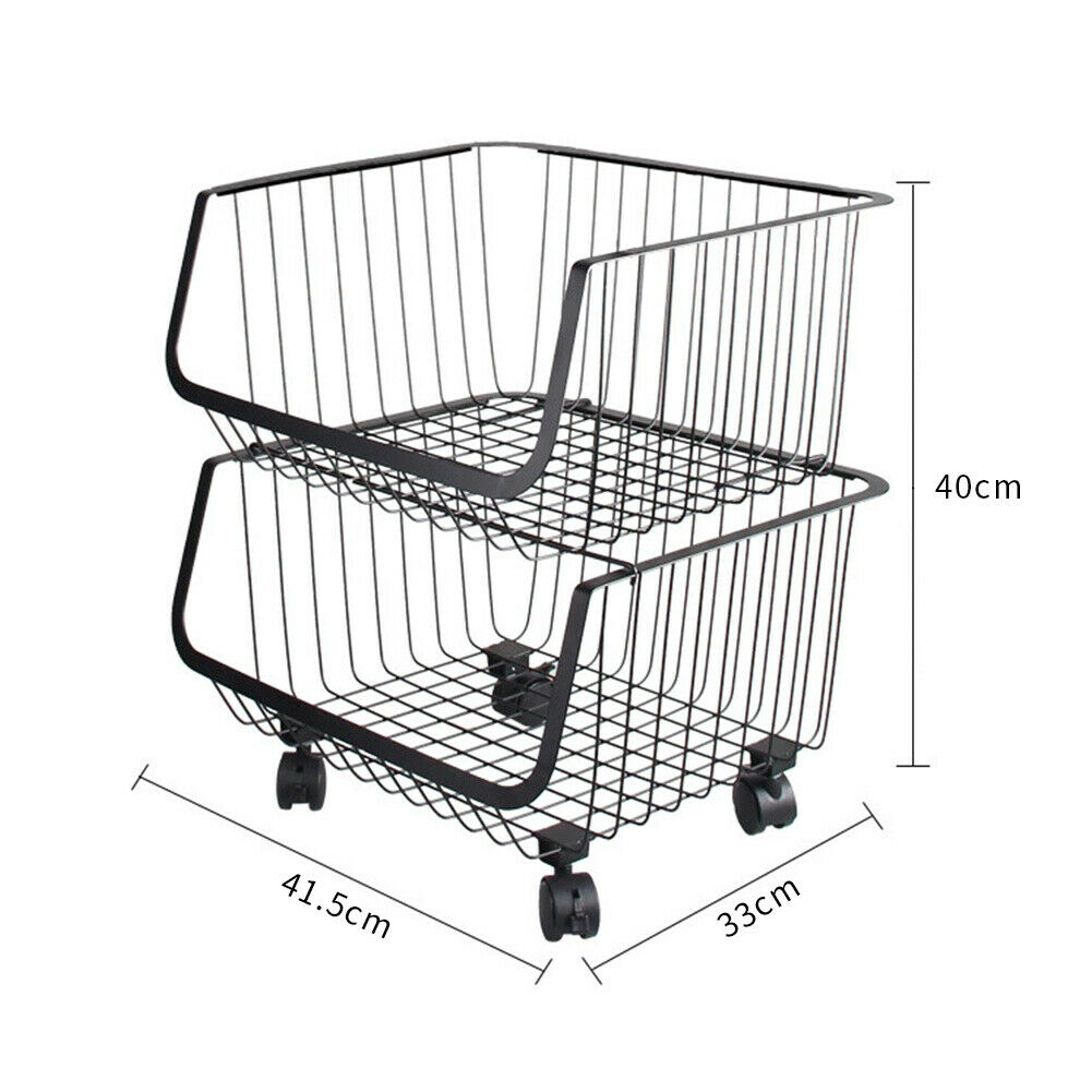 Mobile Kitchen Vegetable Fruit Storage Rack Stackable Metal Wire Basket Holder