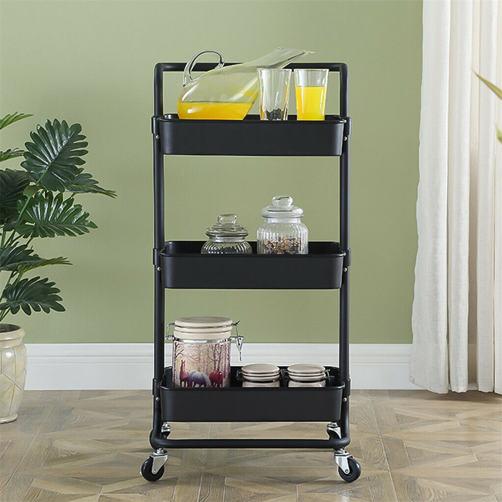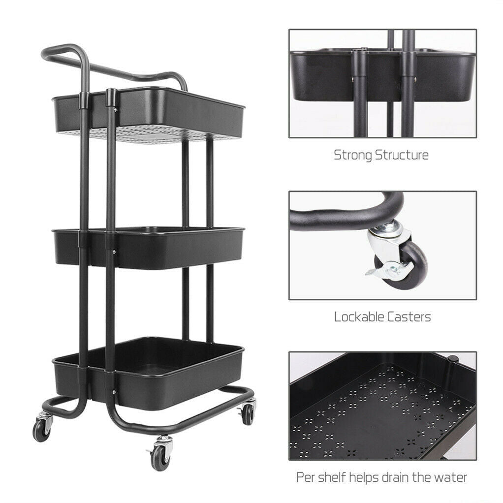 Mobile Rolling Kitchen Trolley Cart 3 Tiers Storage Rack Organizer Mesh Tray UK