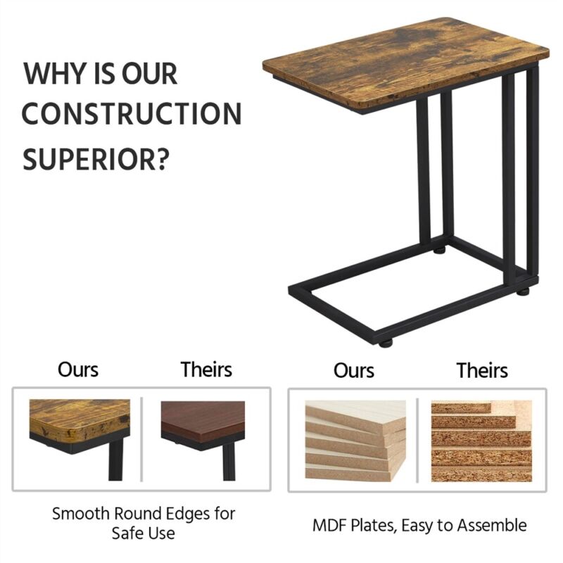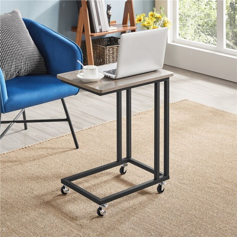 Mobile Side Table, C Shaped Sofa End Table, Coffee Snack Table for Living Room
