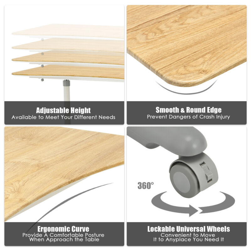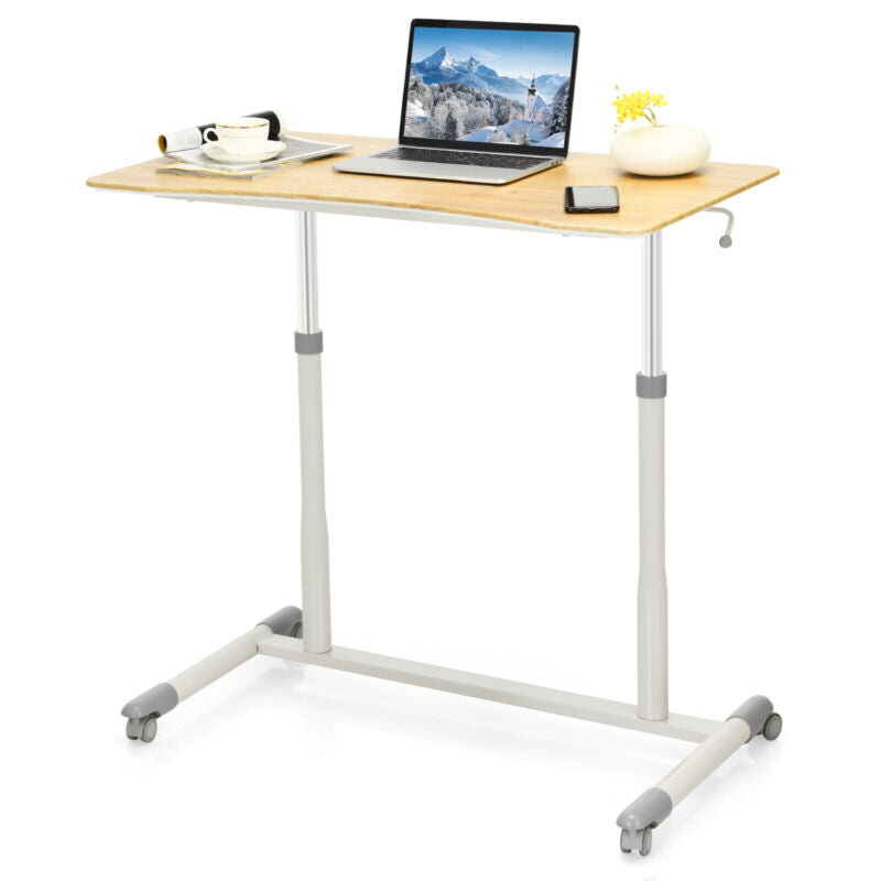 Mobile Standing Desk Height Adjustable Computer Desk w/Rolling Casters & Crank