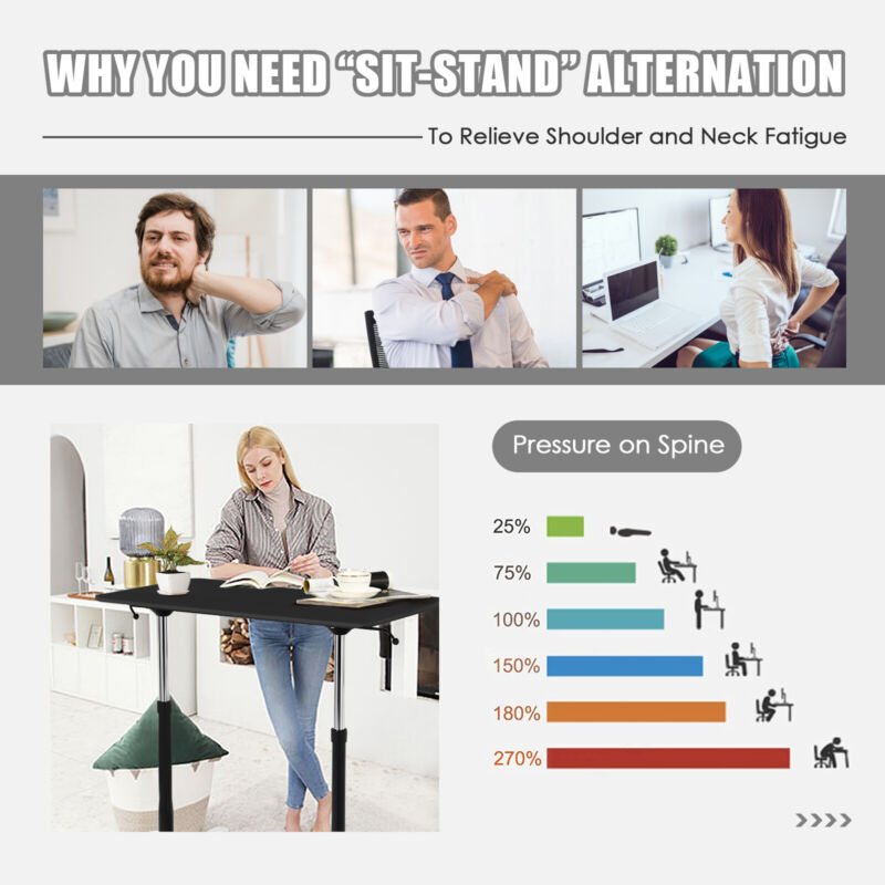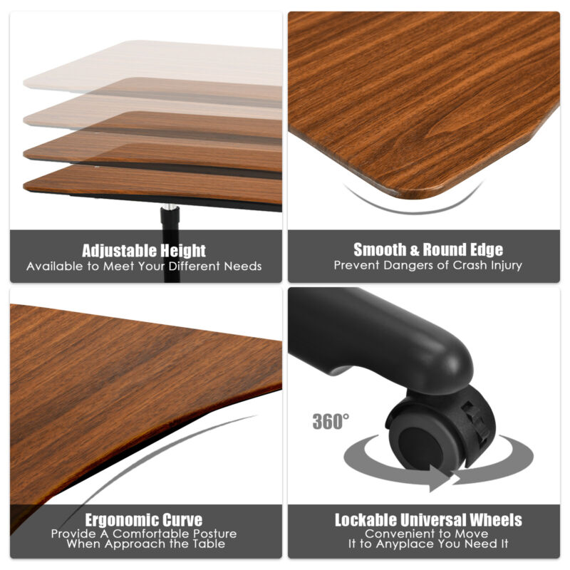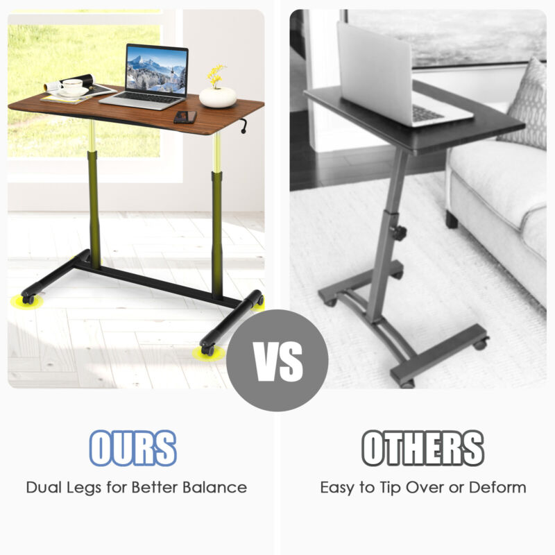Mobile Standing Desk Height Adjustable Computer Desk w/Rolling Casters & Crank