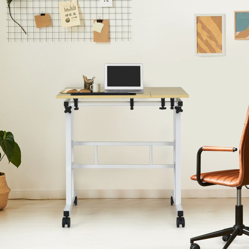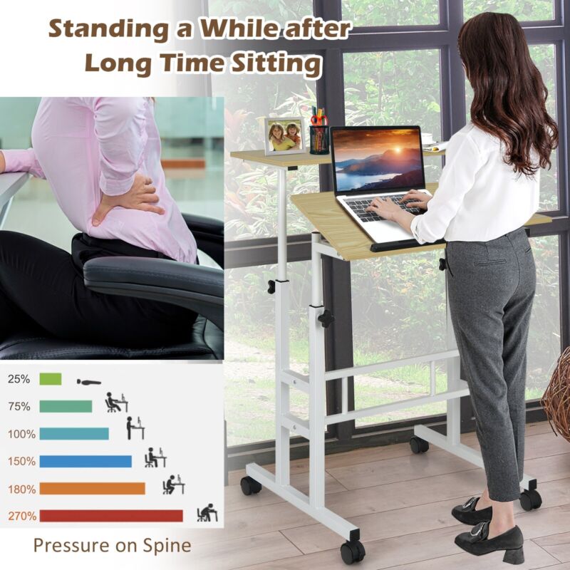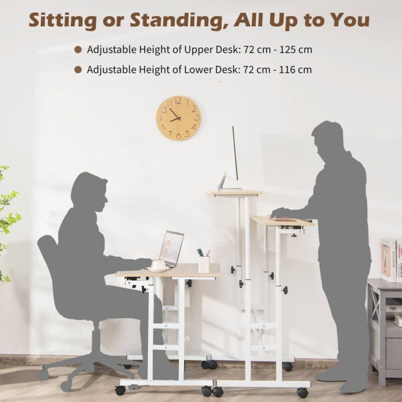 Mobile Standing Desk Height Adjustable PC Laptop Table wIith Flip-over Desktop