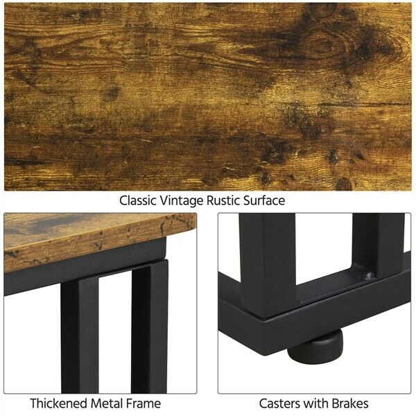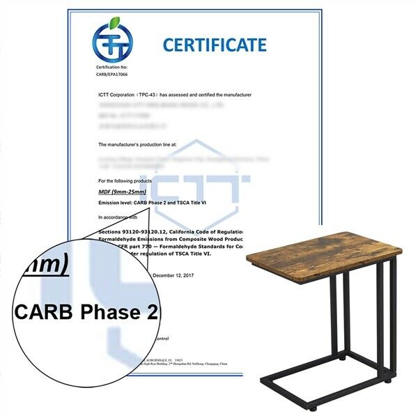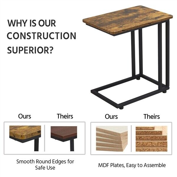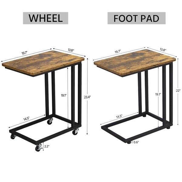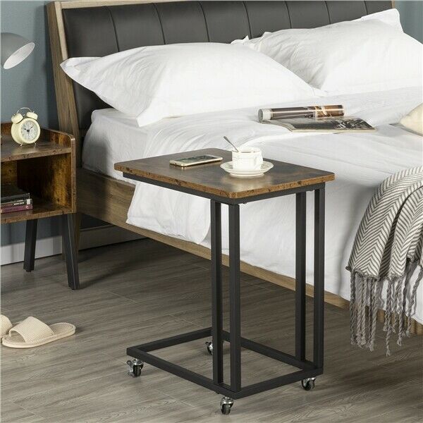 Moblie End Table w/ Metal Legs, Industrial C Shaped Side Table for Small Spaces