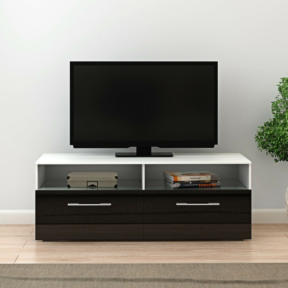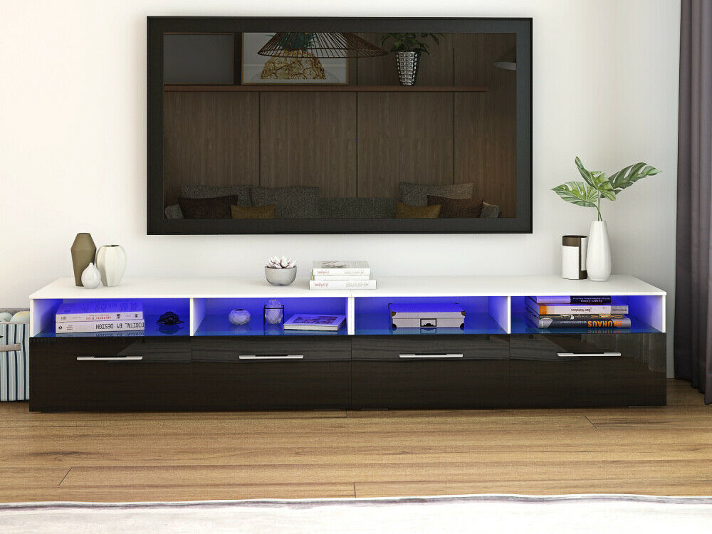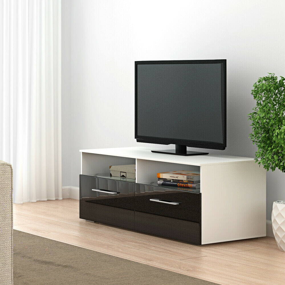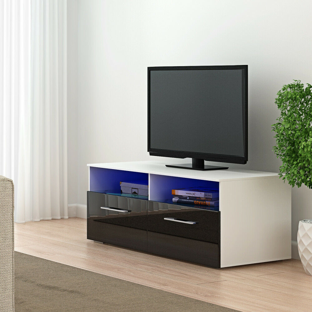 Modern 100cm Black & White TV Unit Stand Cabinet Cupboard with LED Living Room