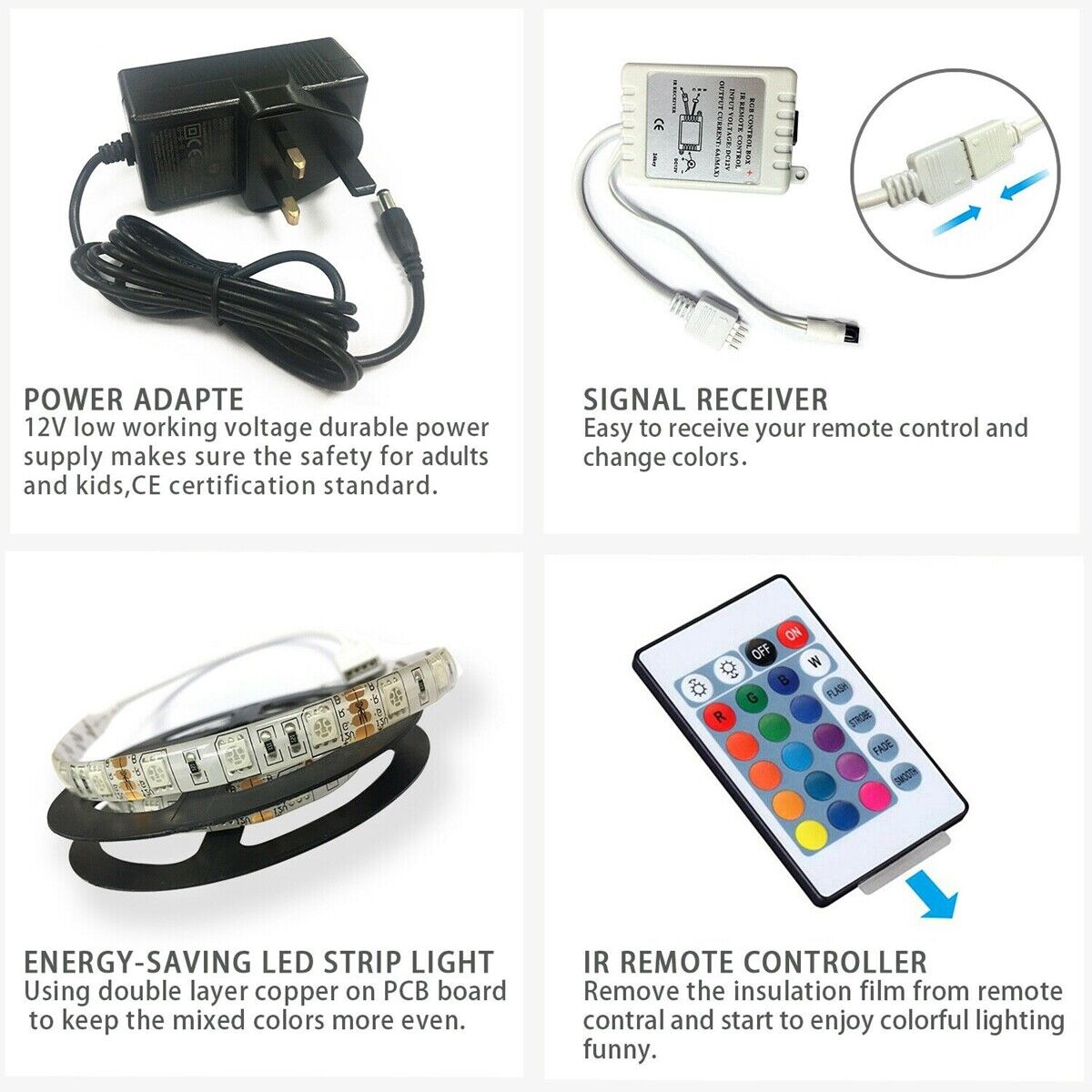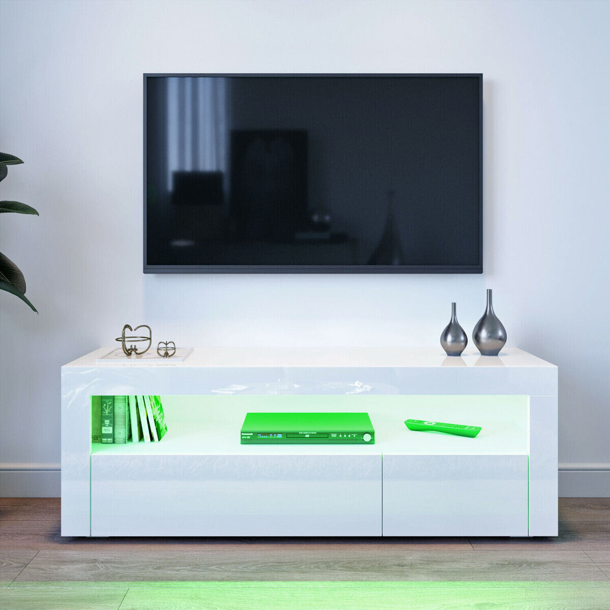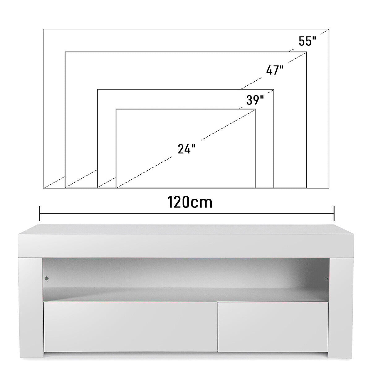 Modern 120CM TV Unit Cabinet Stand Set White High Gloss with LED Lights Drawers