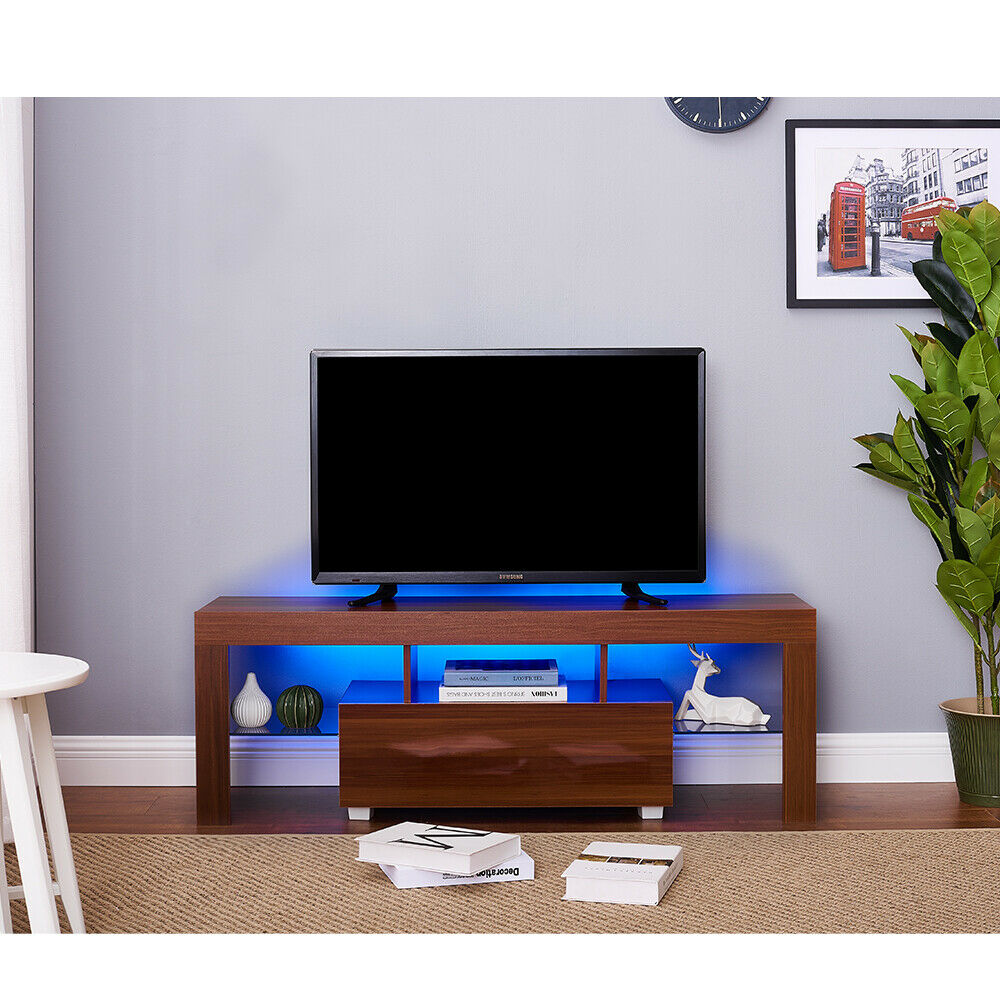 Modern 130cm TV Unit Stand Cabinet Sideboard 1 Drawer Storage RGB LED Lights