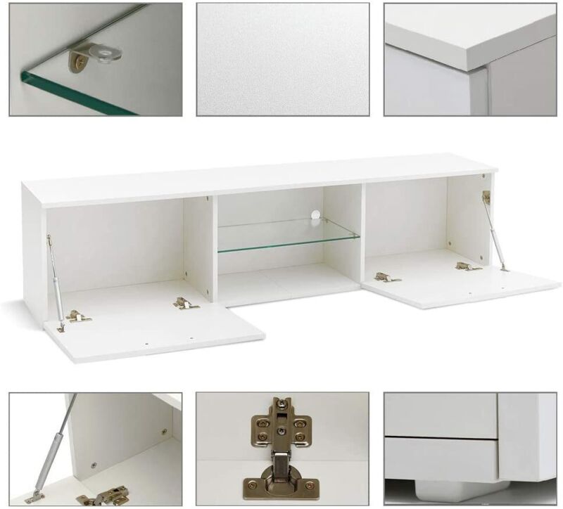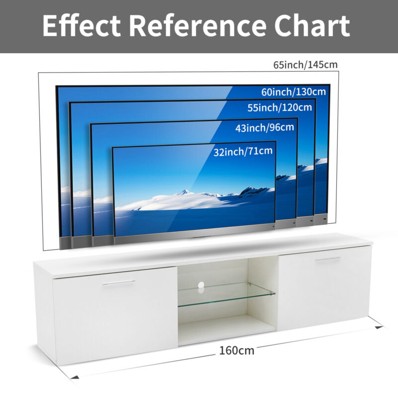 Modern 160cm TV Unit Cabinet Stand High Gloss Doors White with LED Lights