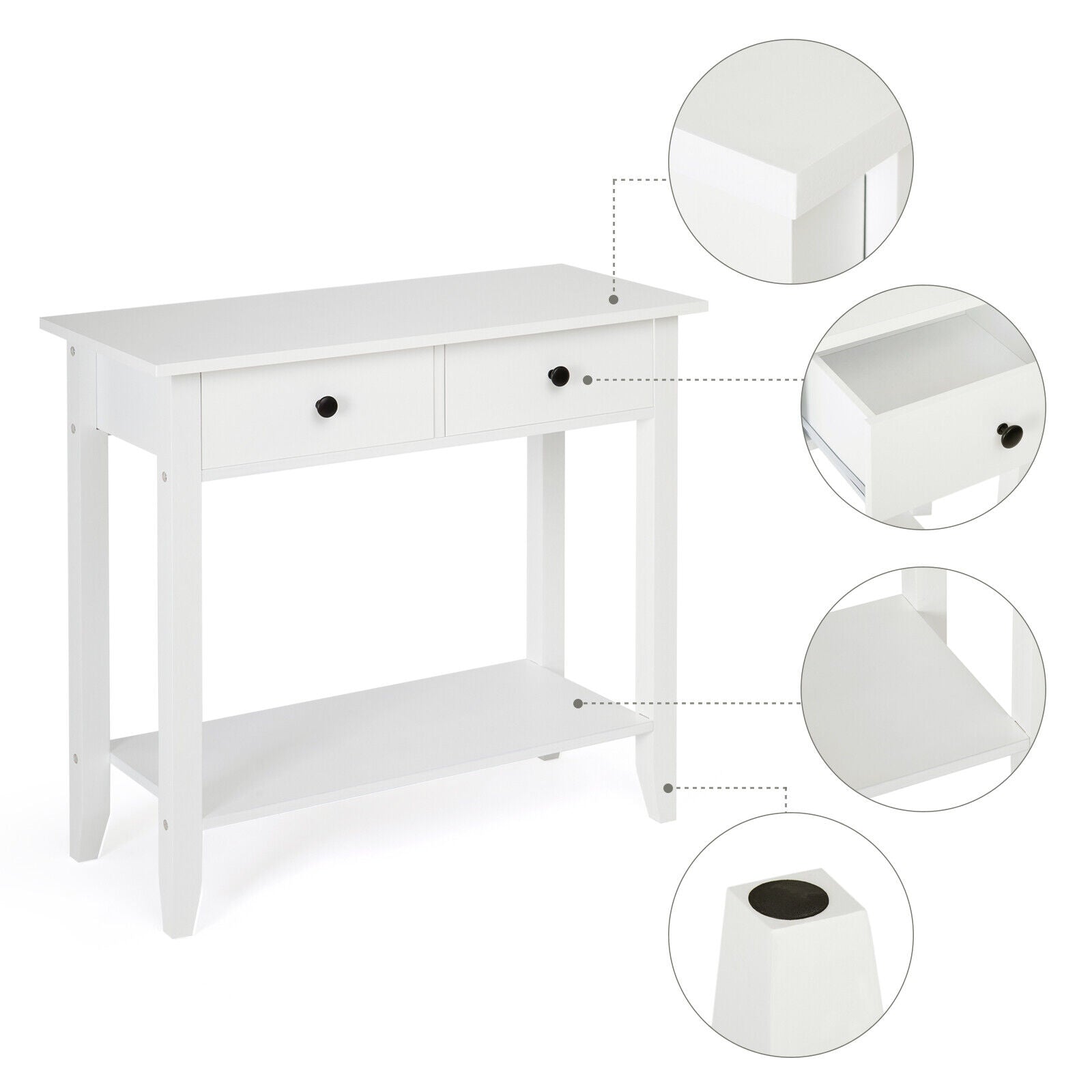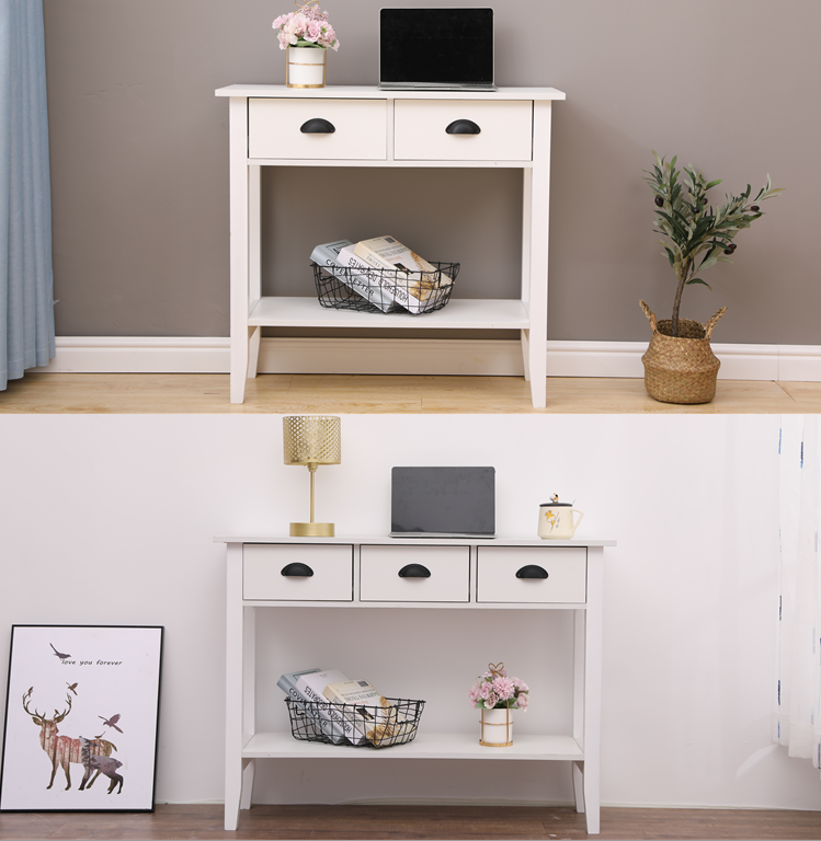Modern 2/3 Drawers Console Table w/Shelf Wooden Side Table Hallway Living Room