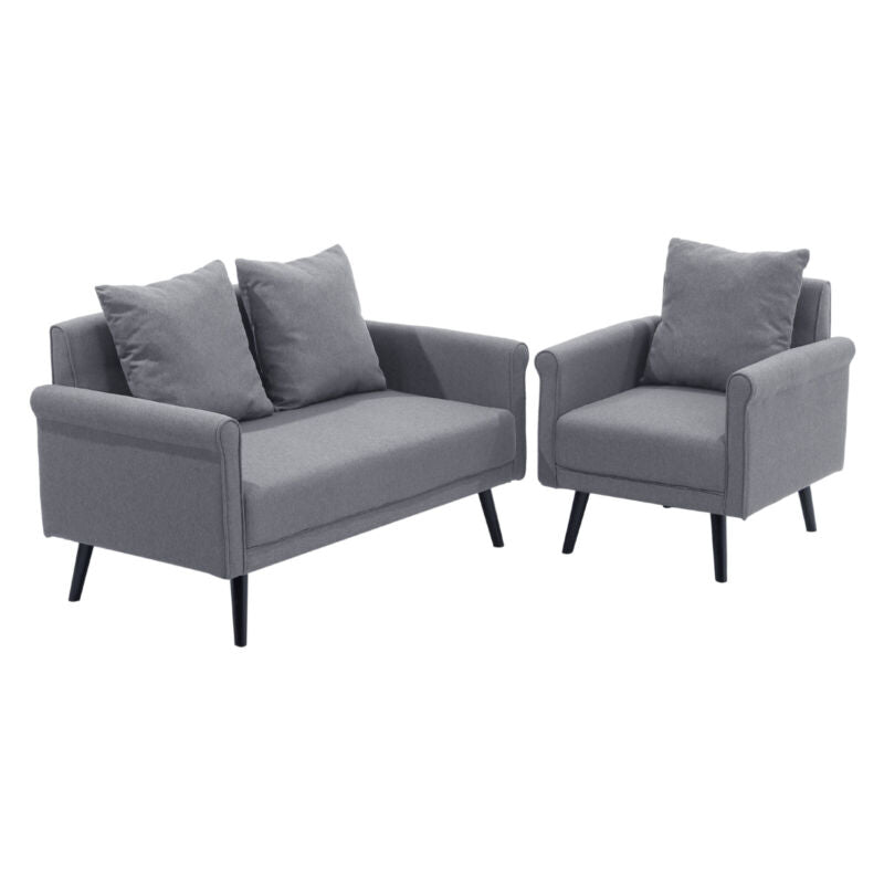 Modern 2 Seater Fabric Sofa Loveseat Couch Settee Armchair Tub Chair Grey Blue
