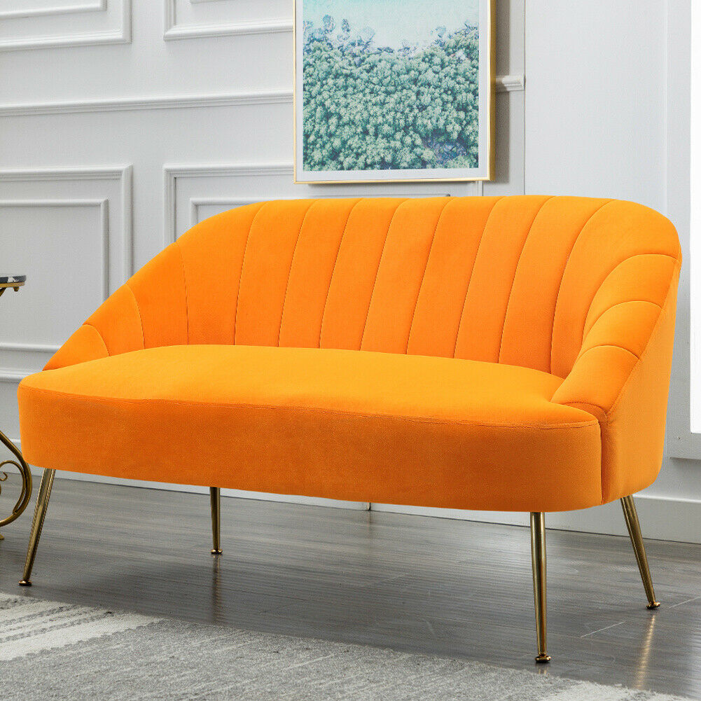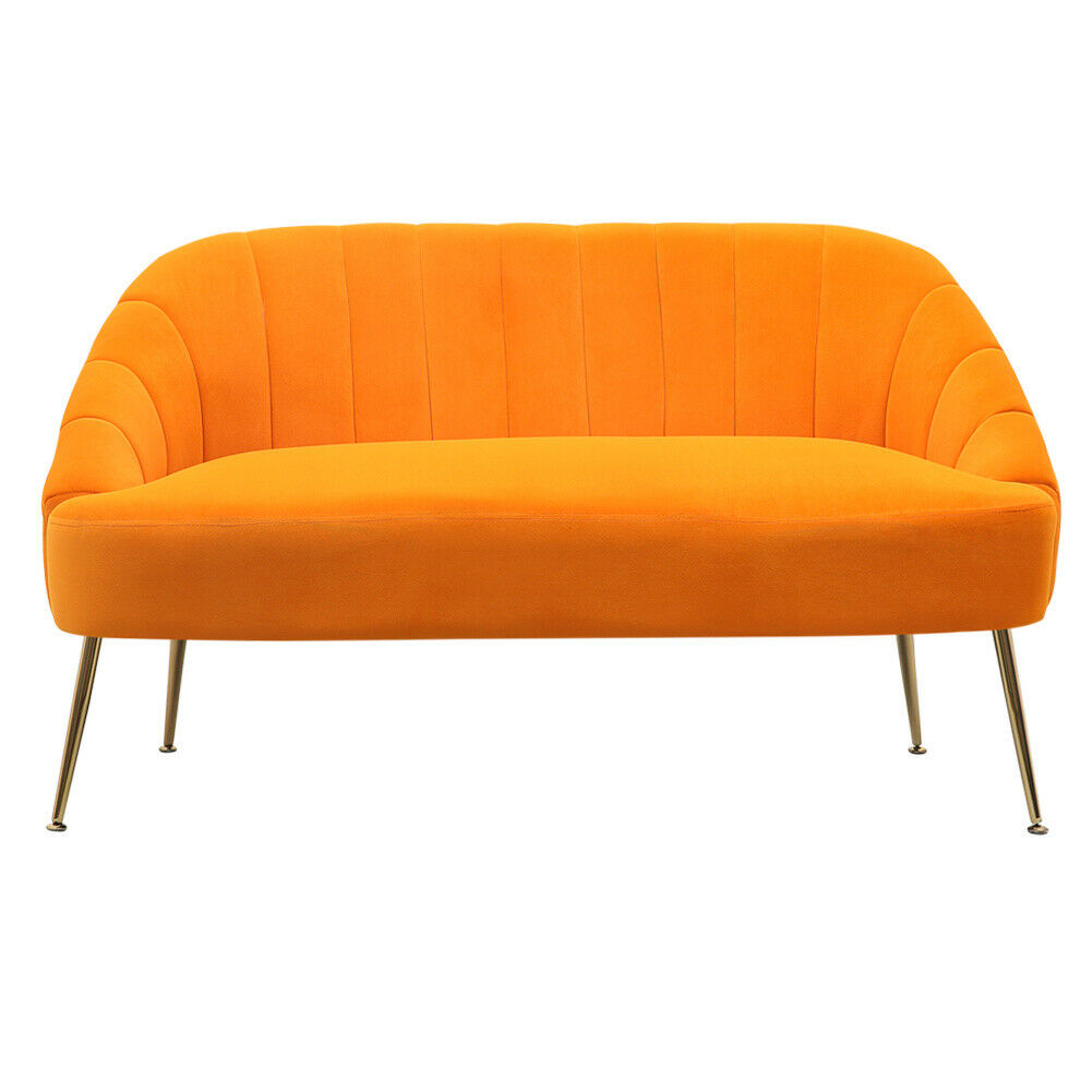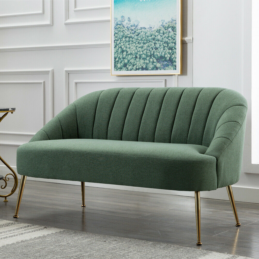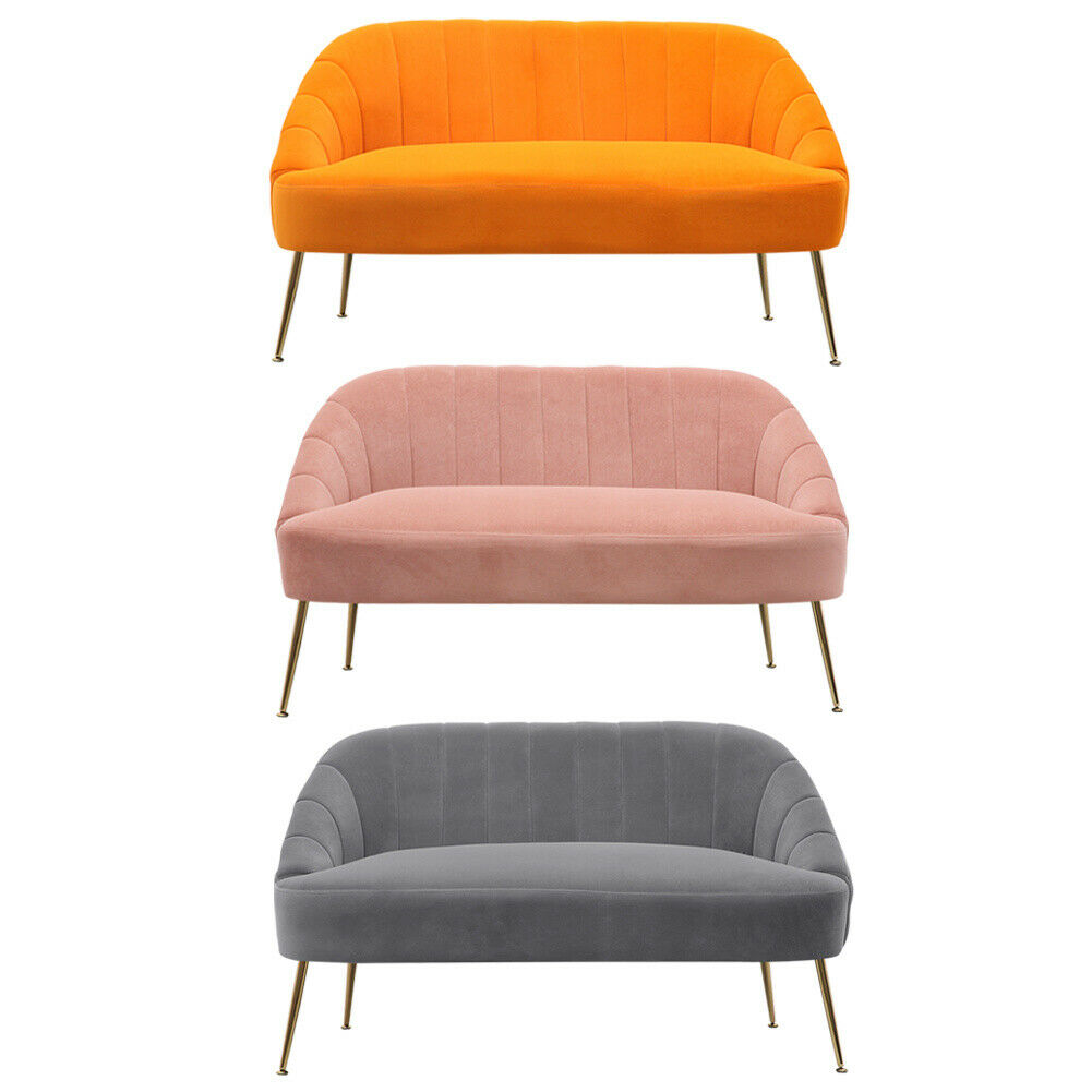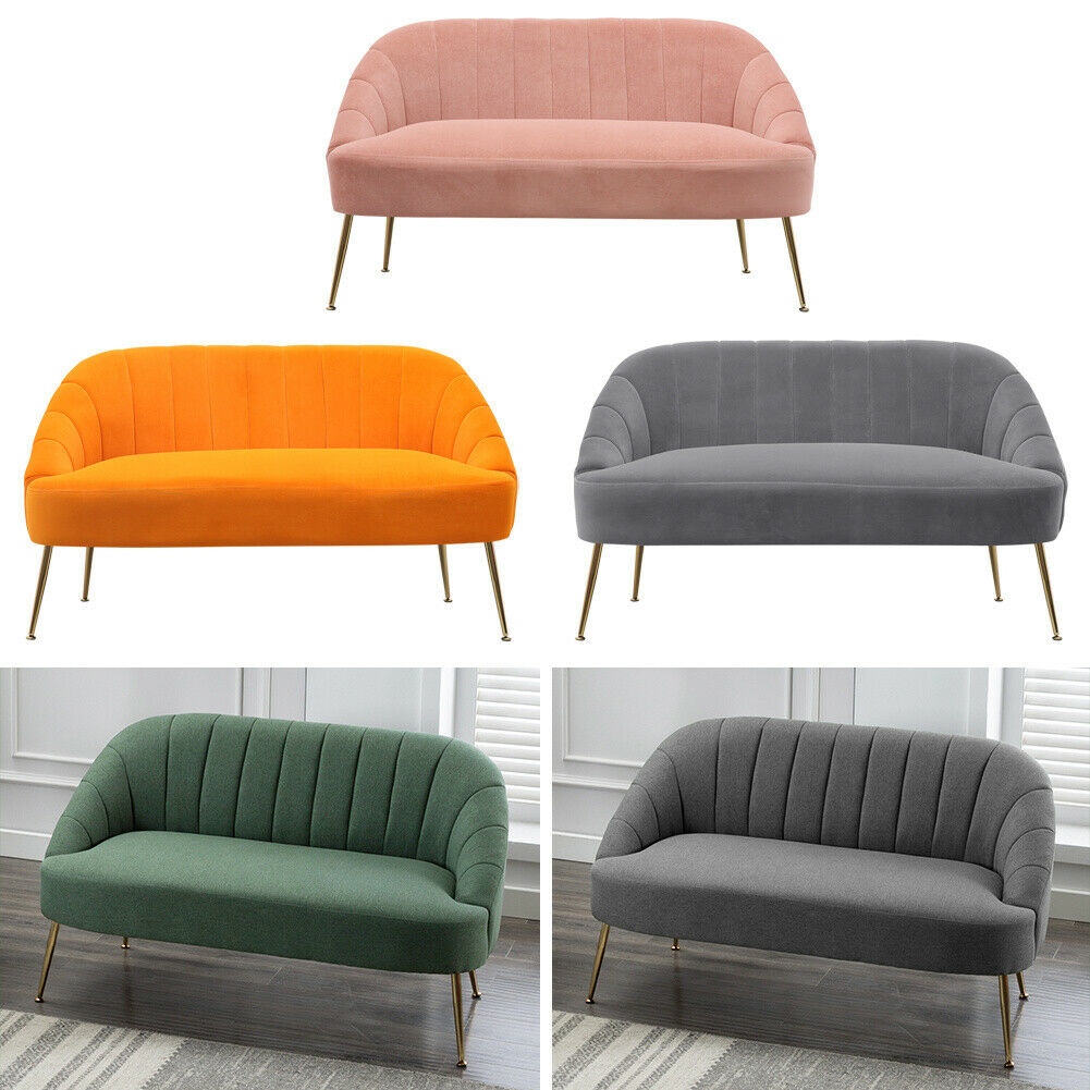 Modern 2 Seater Sofa Armchair Loveseat Scalloped Accent Couch Settee Metal Frame
