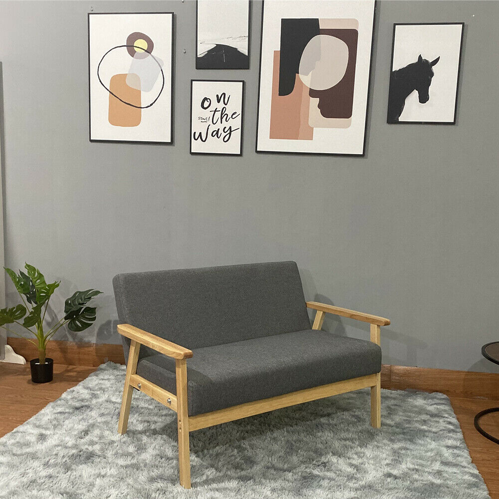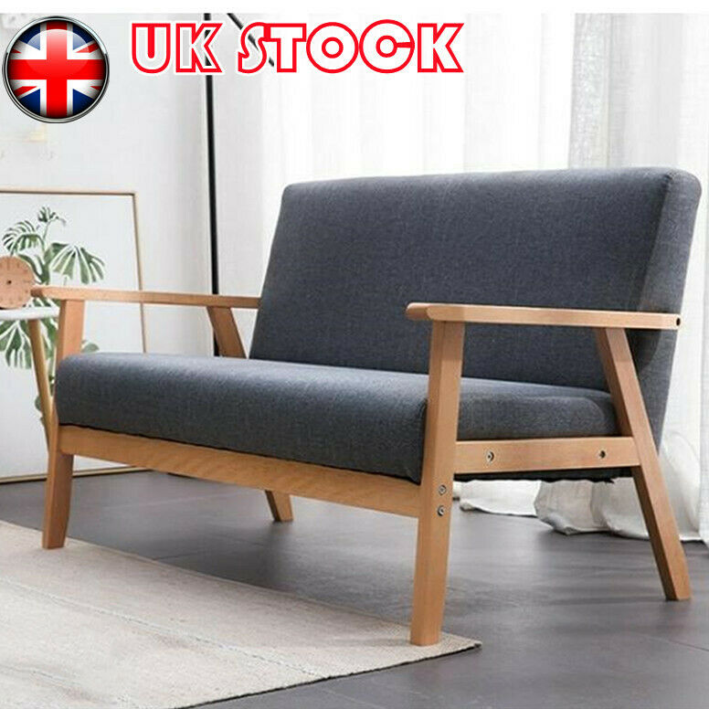 Modern 2 Seater Sofa Bed Armchair Upholstered Fabric Linen Seat Wooden Frame