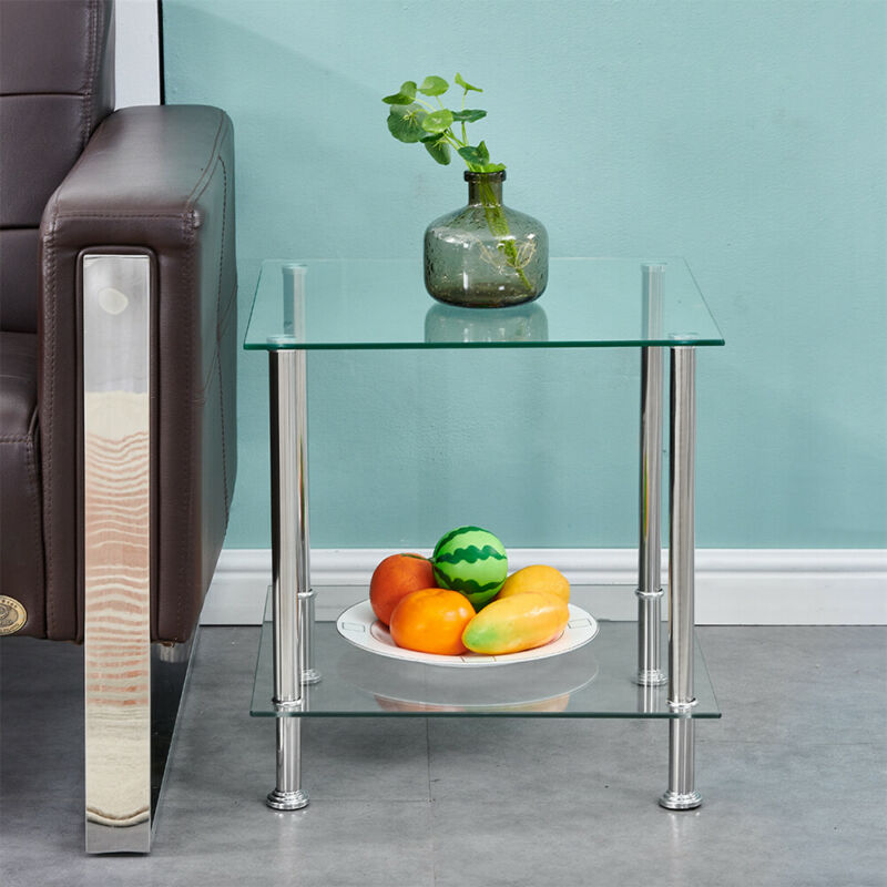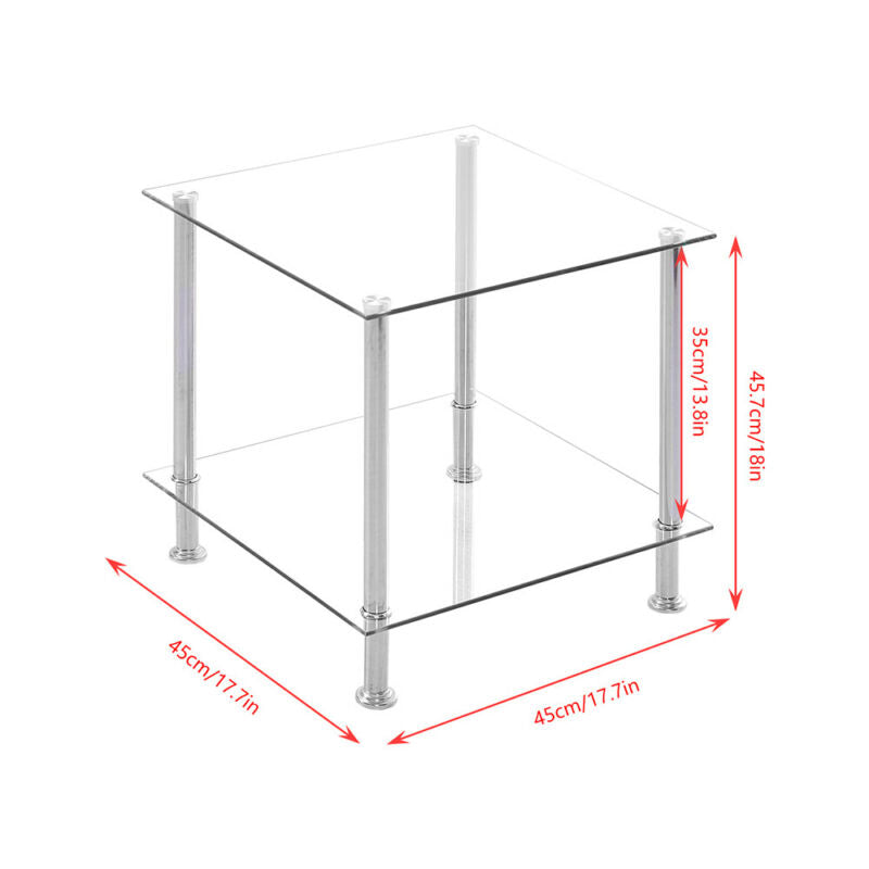 Modern 2 Tier Clear Glass Side End Tables Coffee Occasional Sofa Tables Square