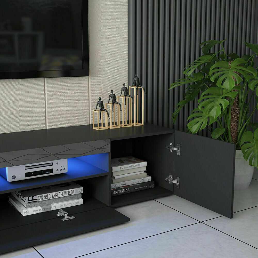 Modern 200 cm TV Unit Stand Cabinet with LED Lights High Gloss Doors Black