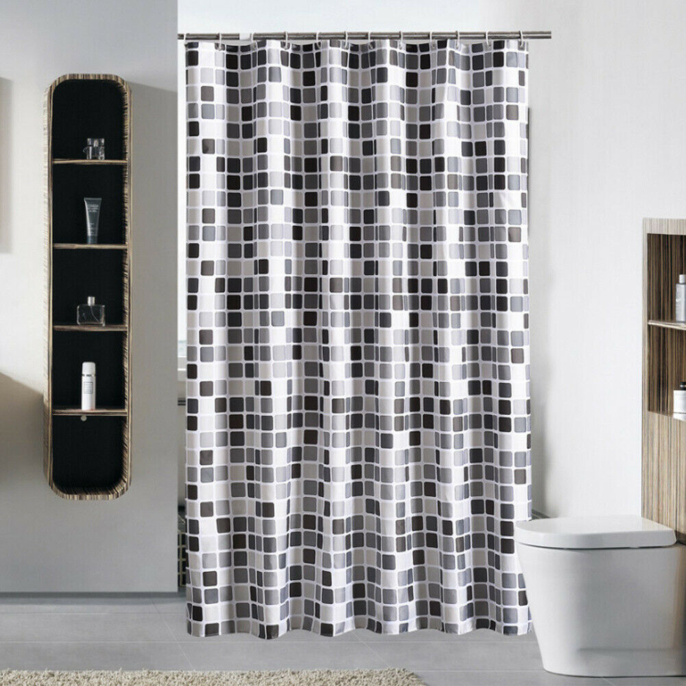 Modern 200 x 220cm Bathroom Mosaic Pattern Extra Long Shower Curtain With Rings