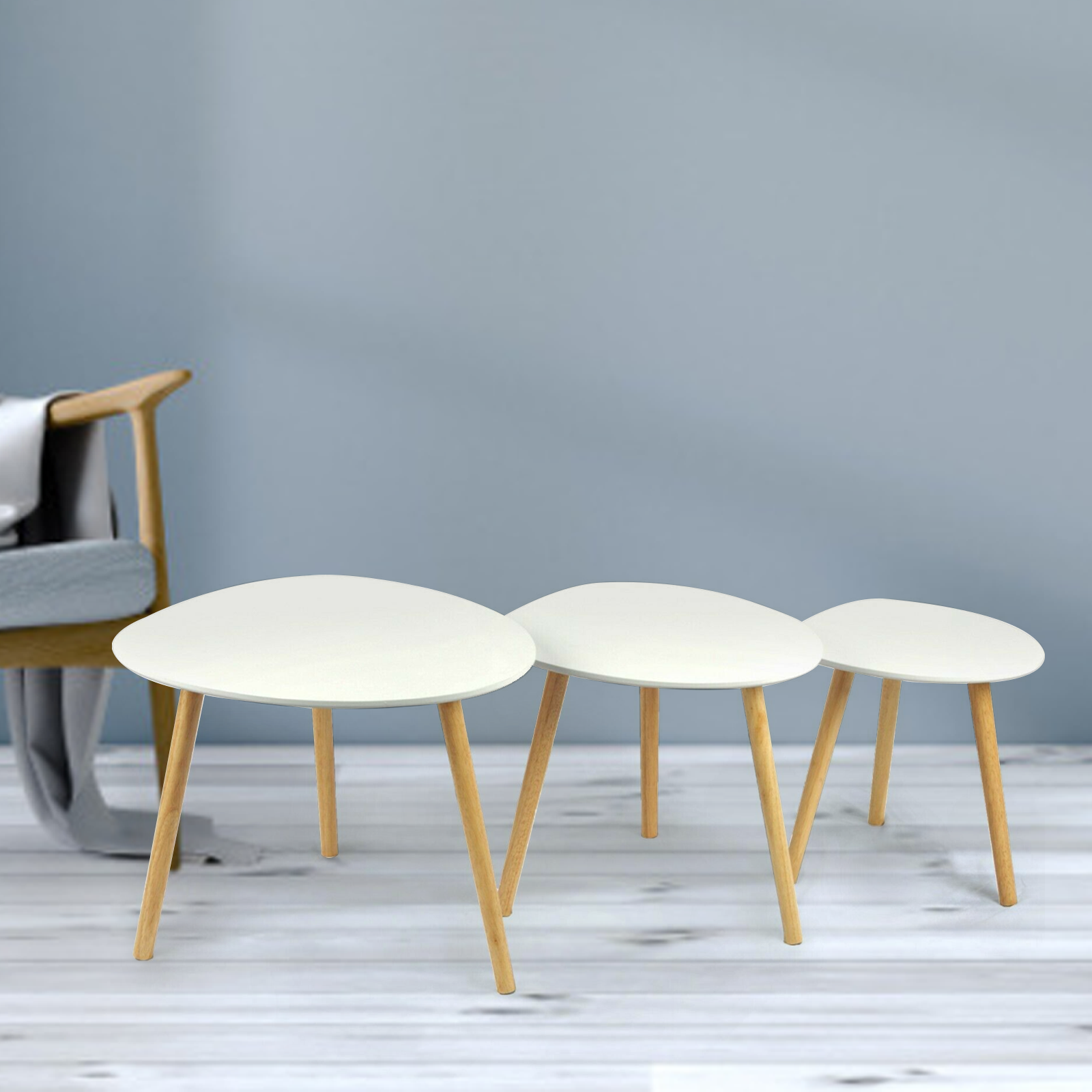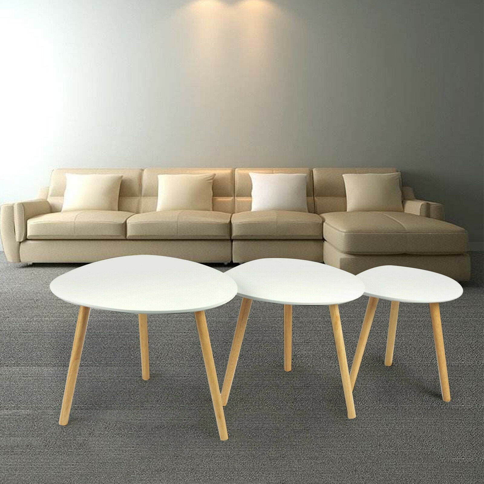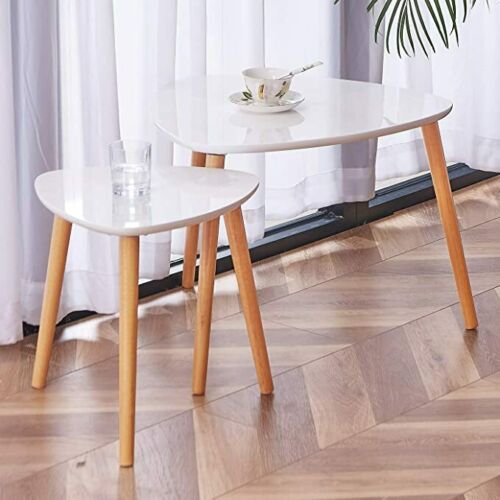 Modern 3 × Coffee Table Set Sofa Tables Nested Side Living Room Home Wood White