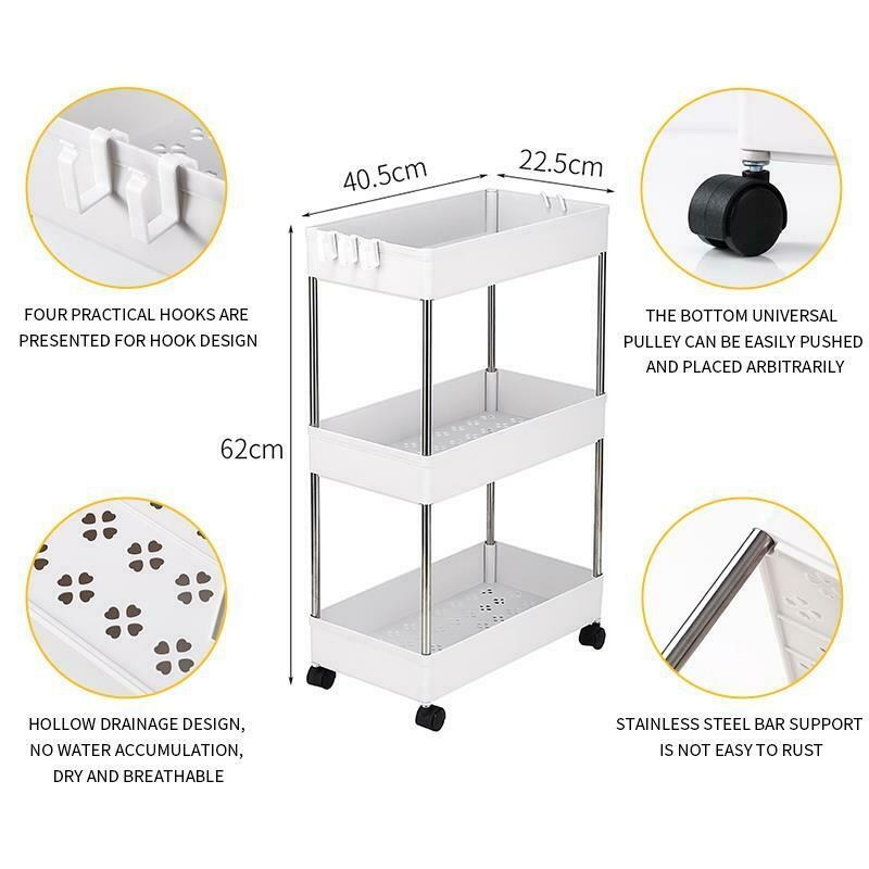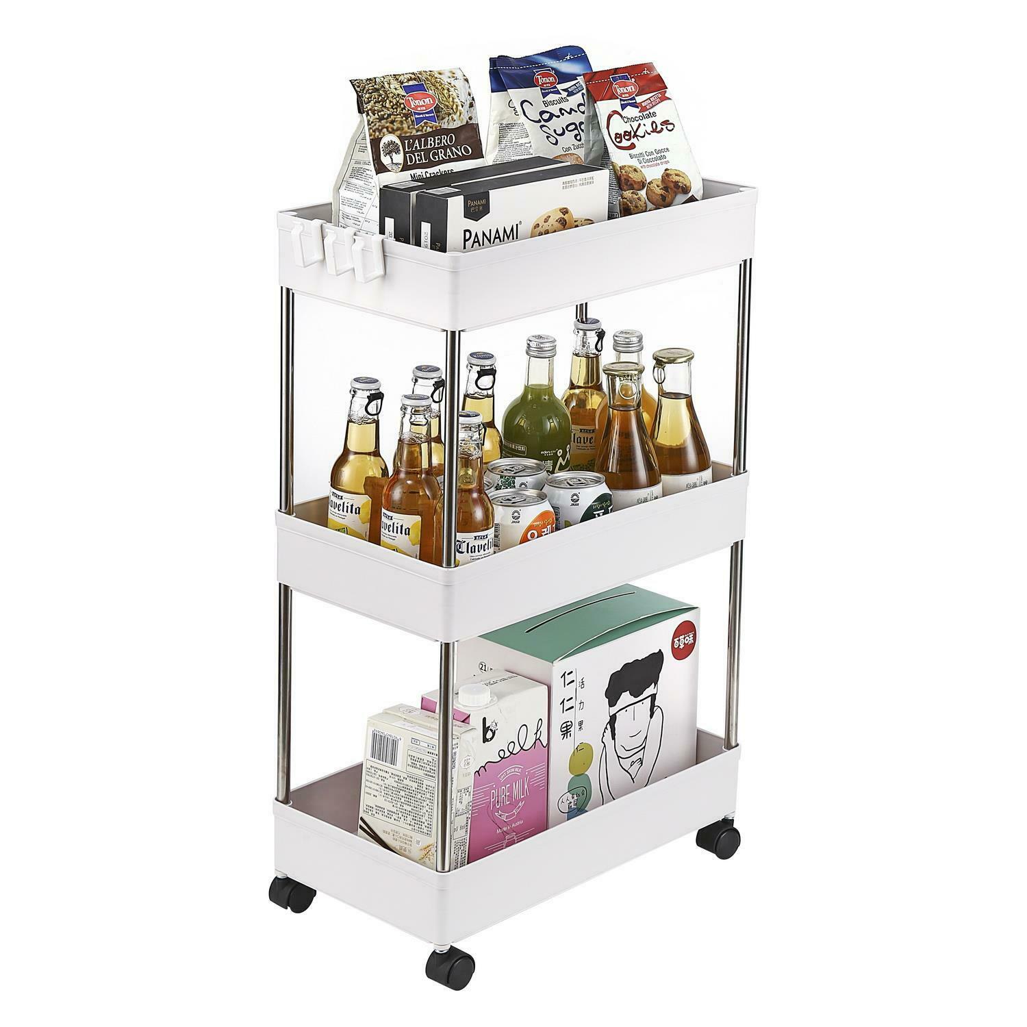 Modern 3 Tier Kitchen Trolley Cart Storage Rack Tray Shelf Rolling Wheel UK