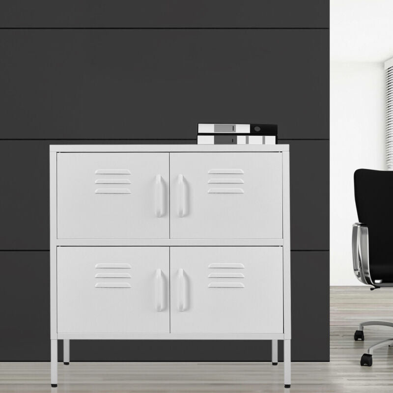 Modern 4 Doors 4 Shelves Metal Filing Cabinet Office Document Storage Cupboard