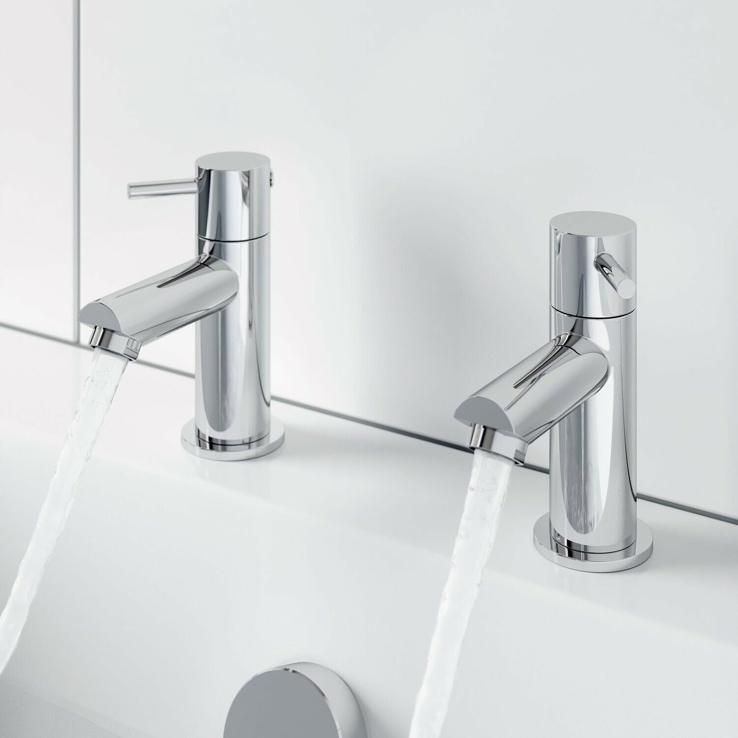 Modern Bathroom Bath Taps Hot & Cold Pair Twin Brass Round Lever Handle Chrome