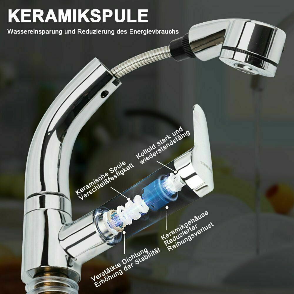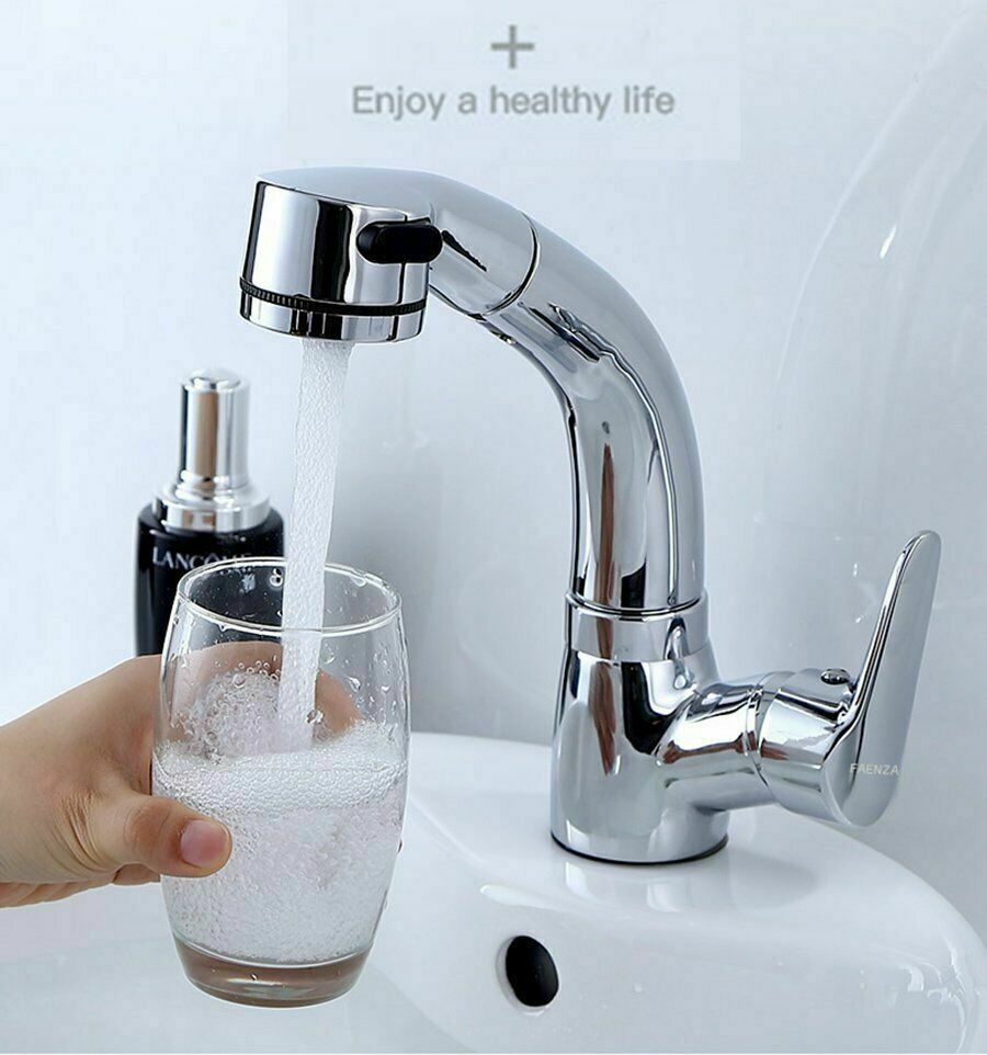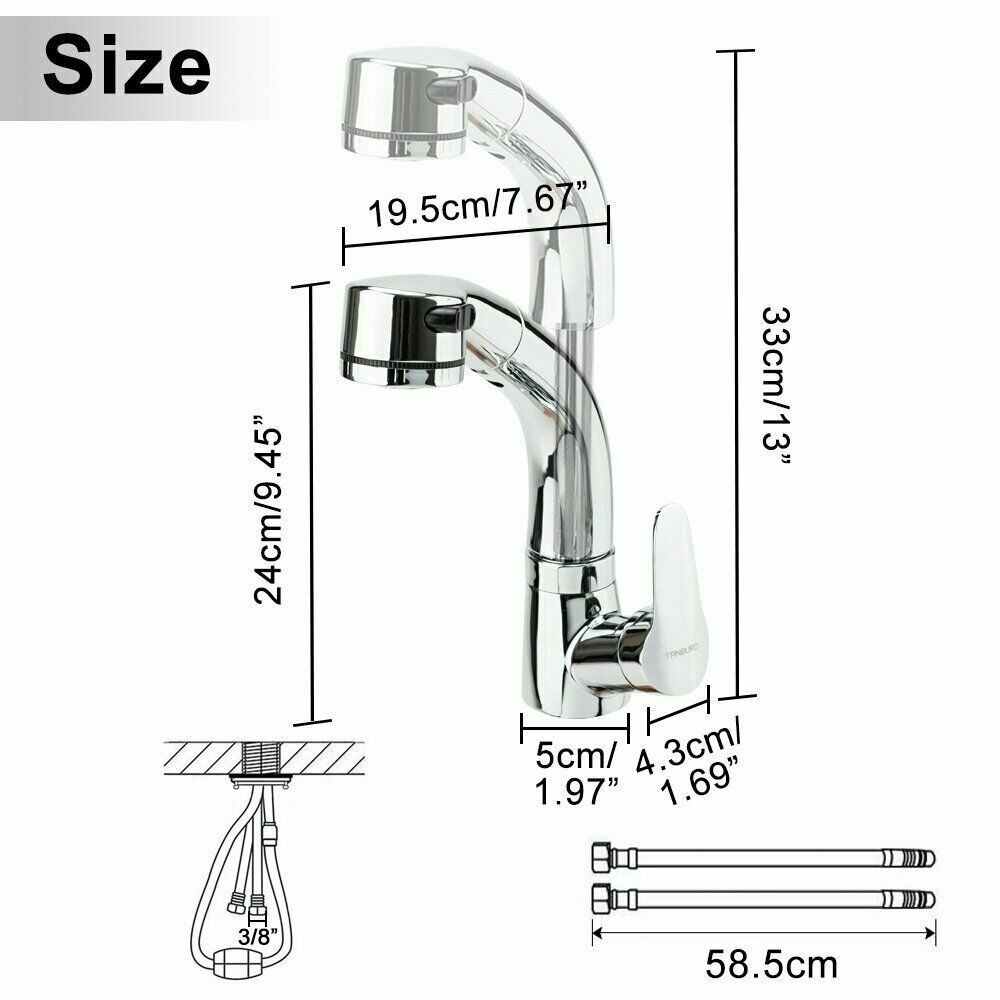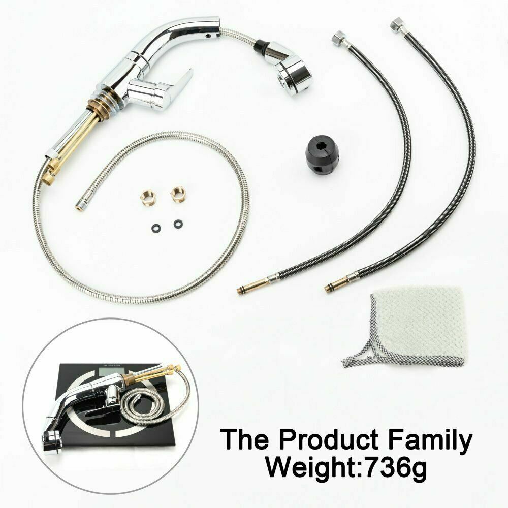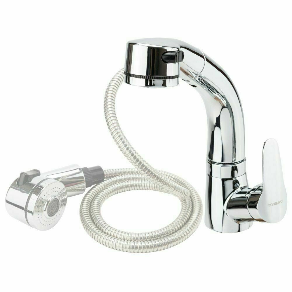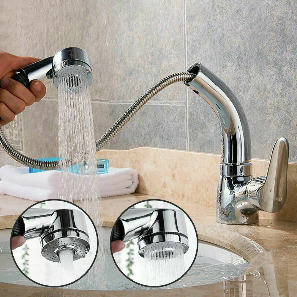 Modern Bathroom Kitchen Basin Sink Tap Pull Out Monobloc Mixer Taps Chrome Brass