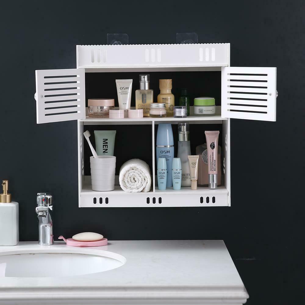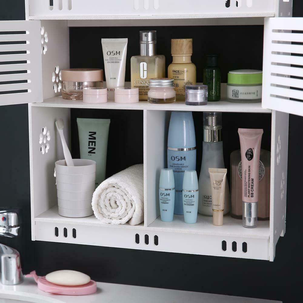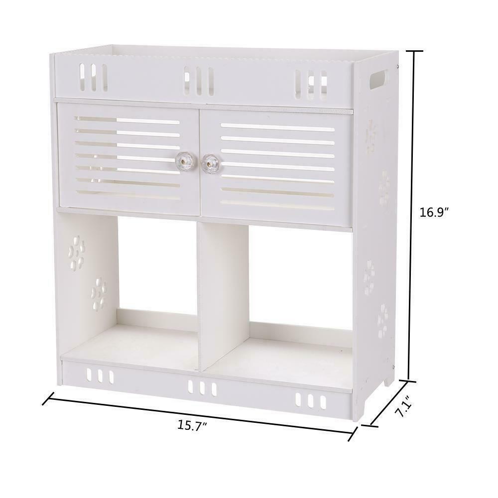 Modern Bathroom Shelf Cabinet Storage Two Doors Two Tiers Wall Home