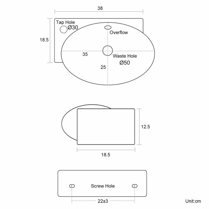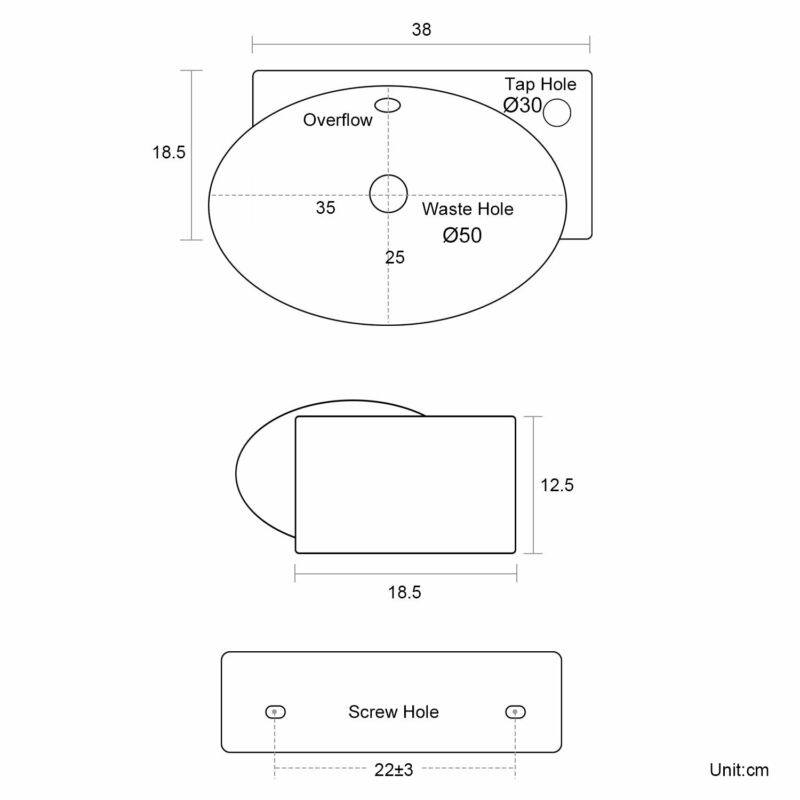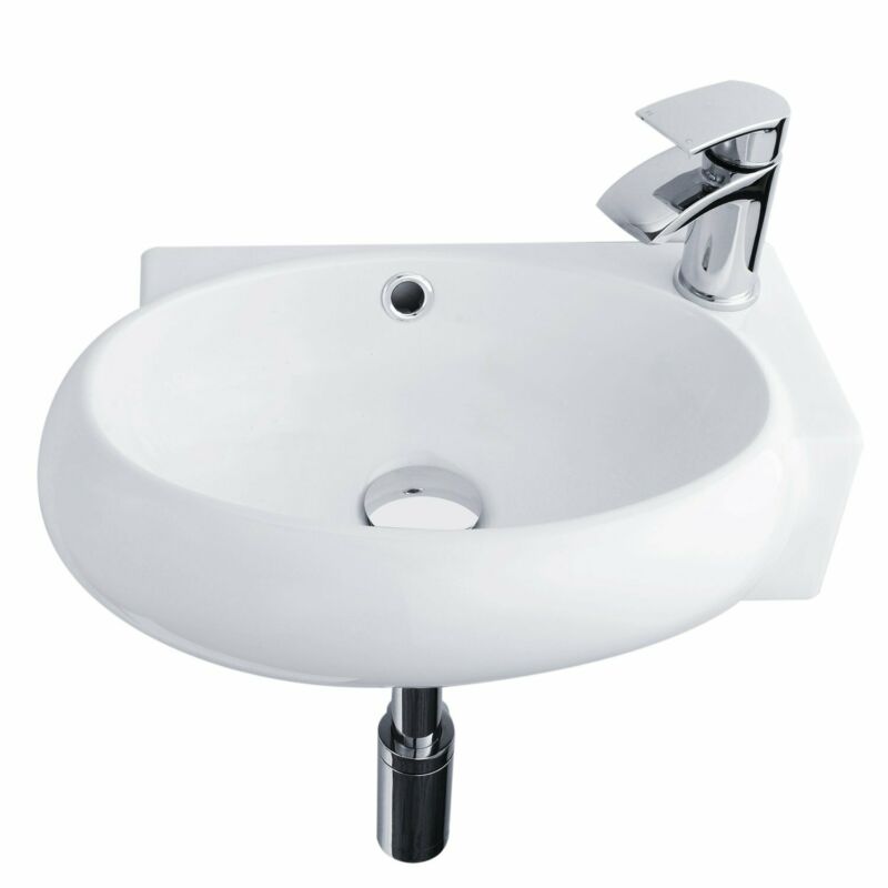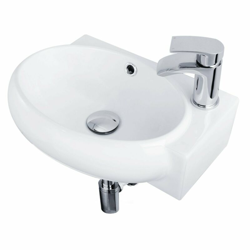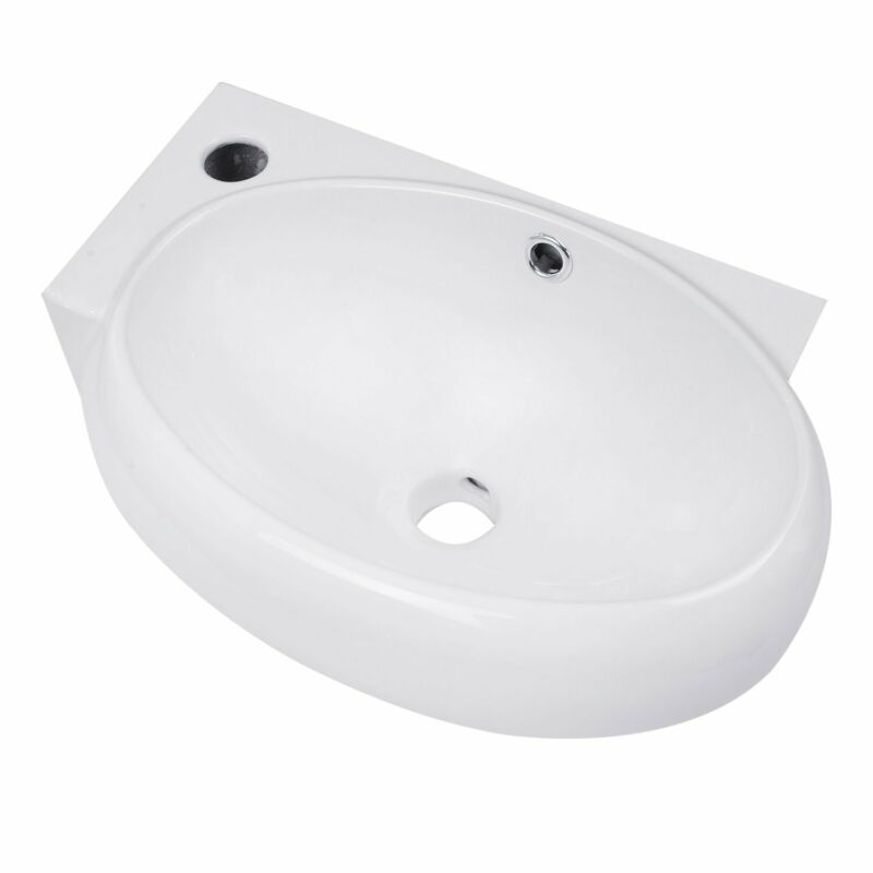 Modern Bathroom Sink Wall Mounted Cloakroom Hand Wash Basin White Ceramic Bowl