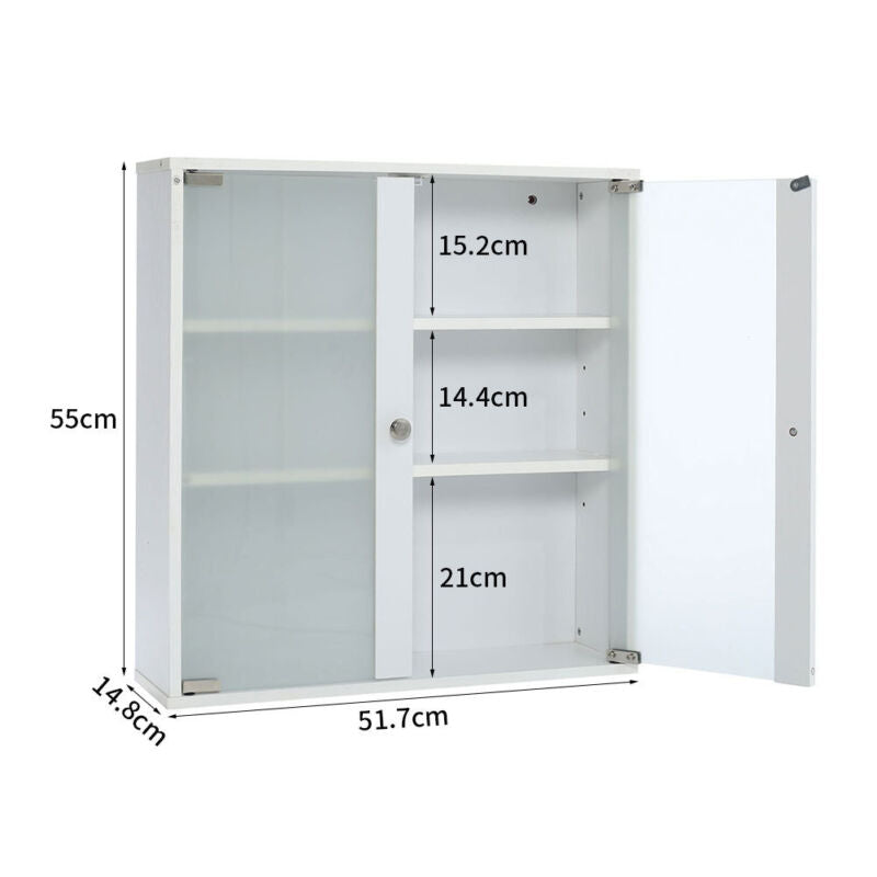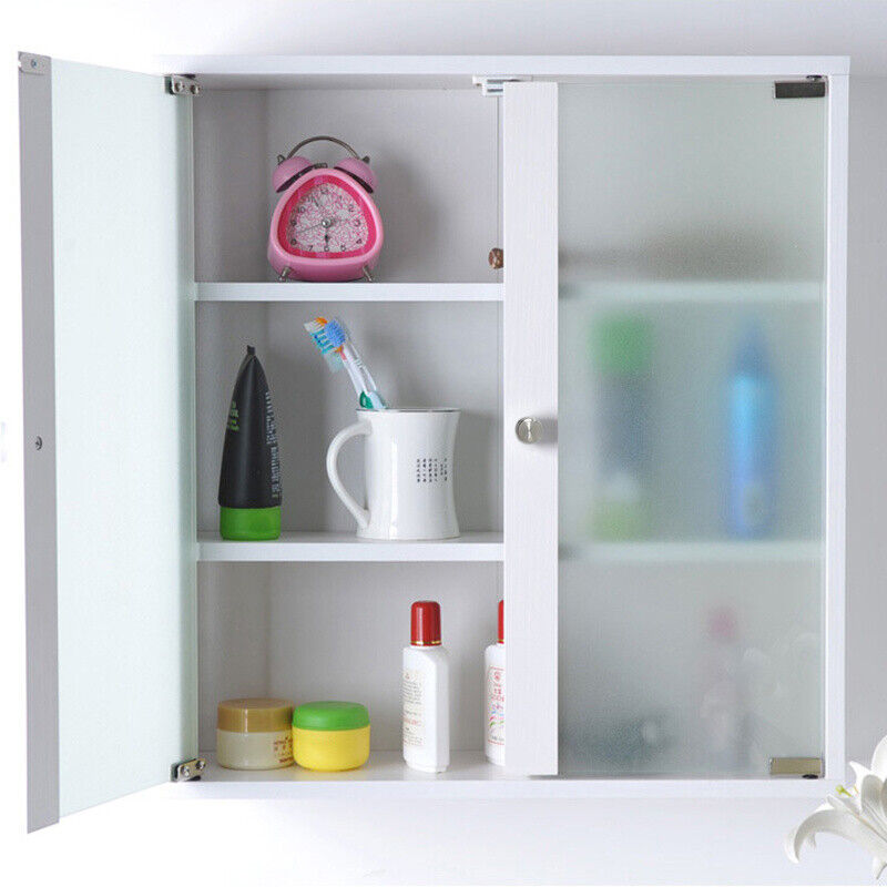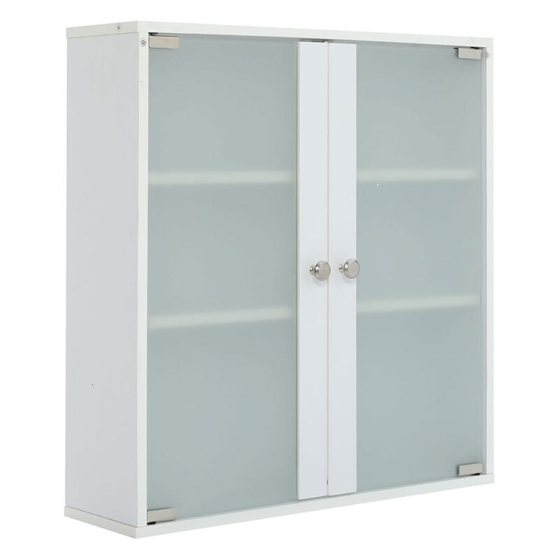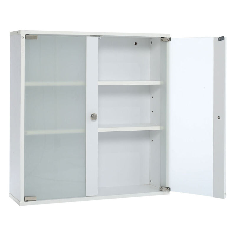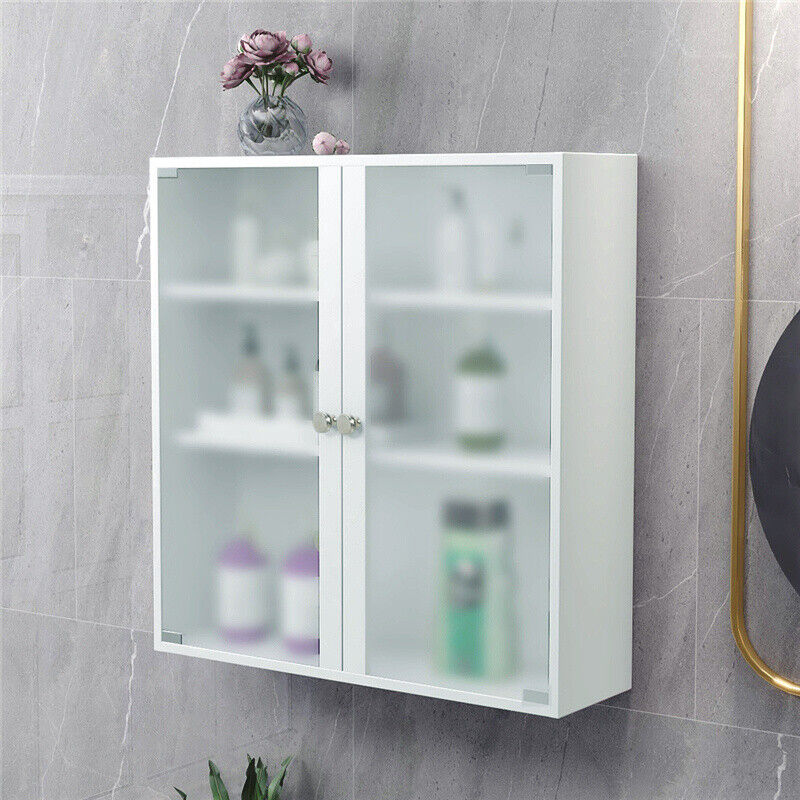 Modern Bathroom Wall Mounted Cabinet w/Storage Shelf Clear Glass 2 Door Cupboard