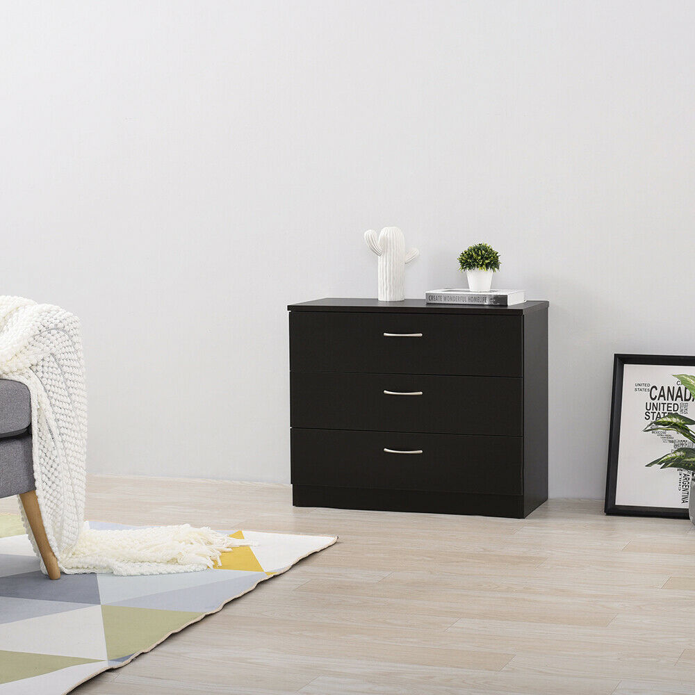 Modern Bedside Table Cabinet Chest of Drawers Nightstand 3 Drawers Bedroom BLACK