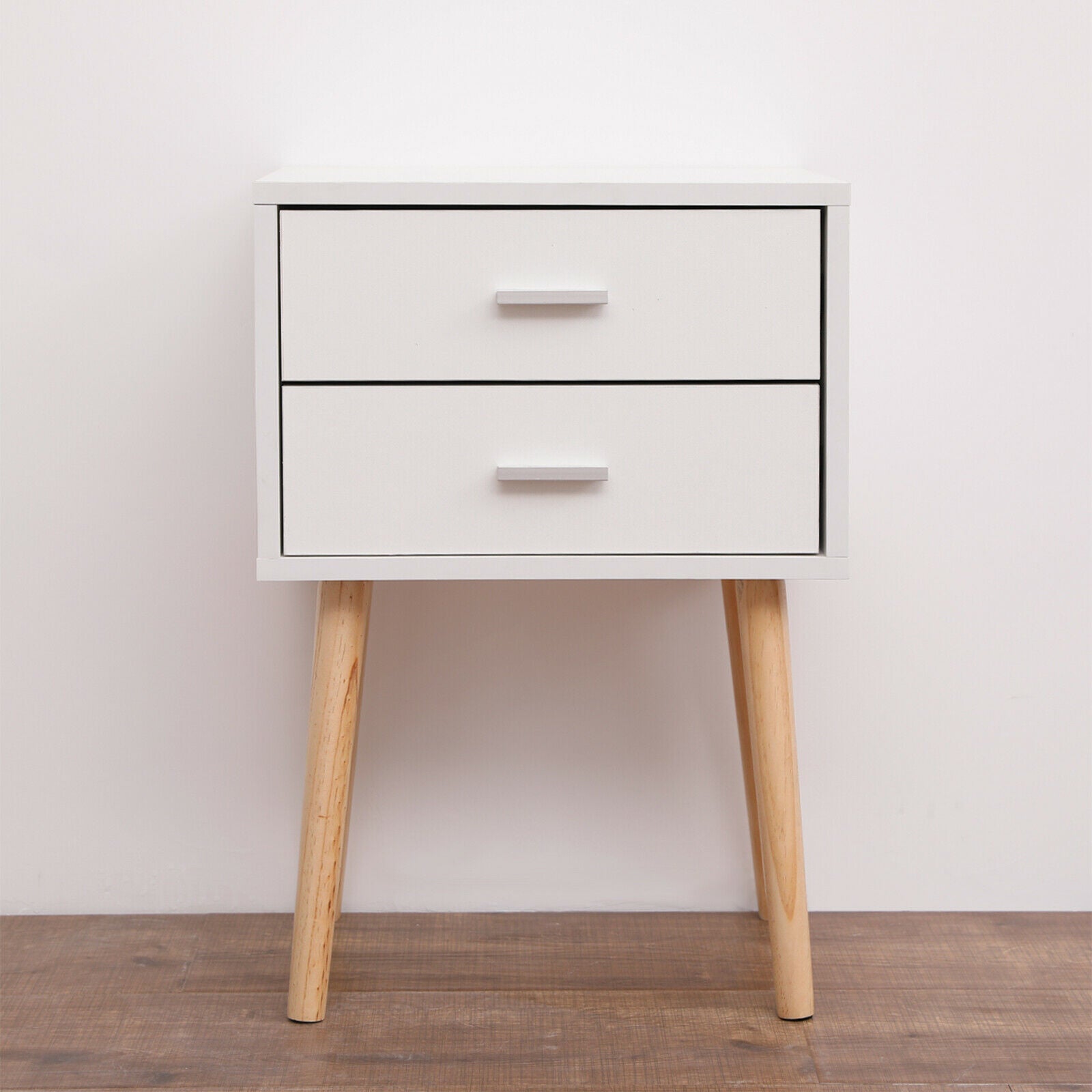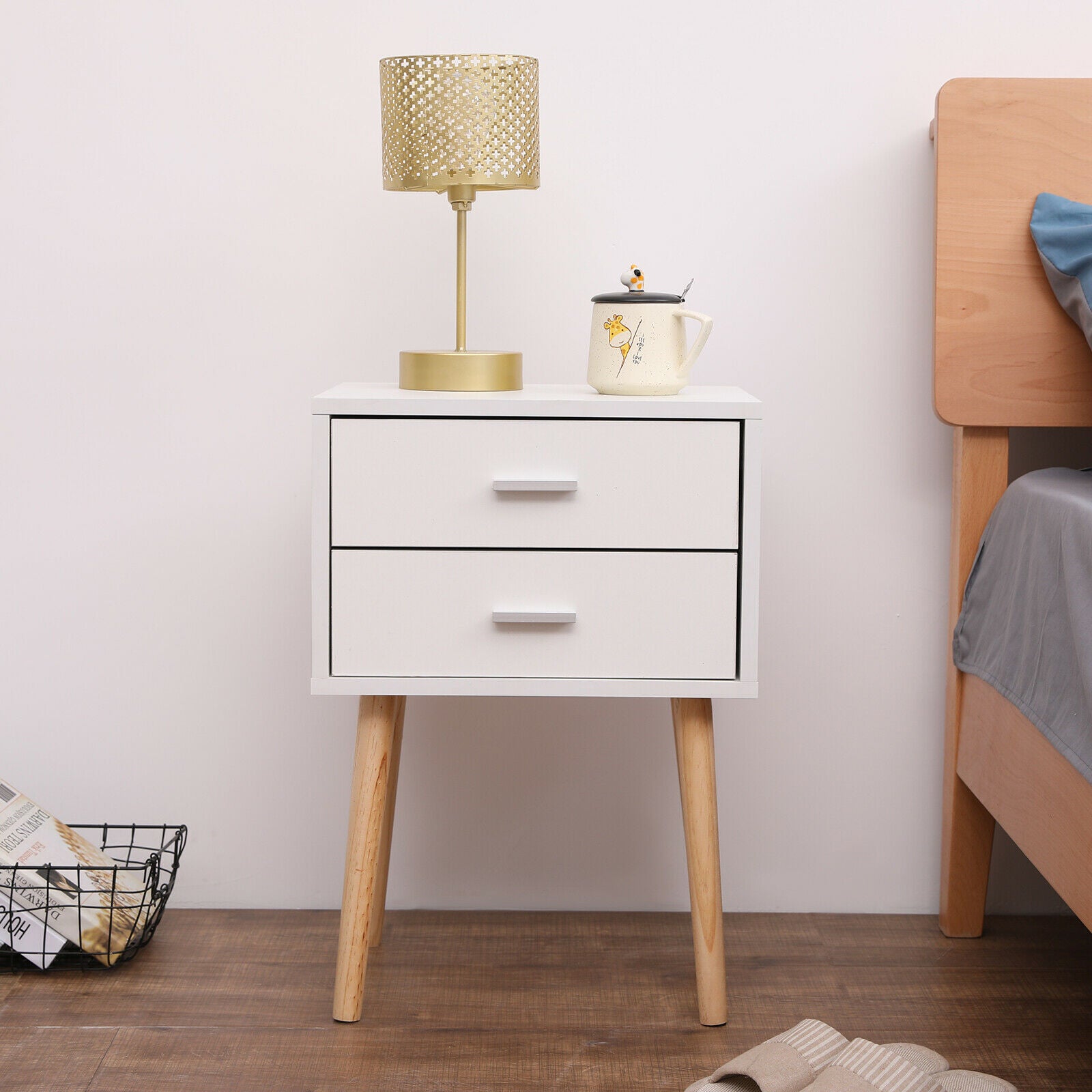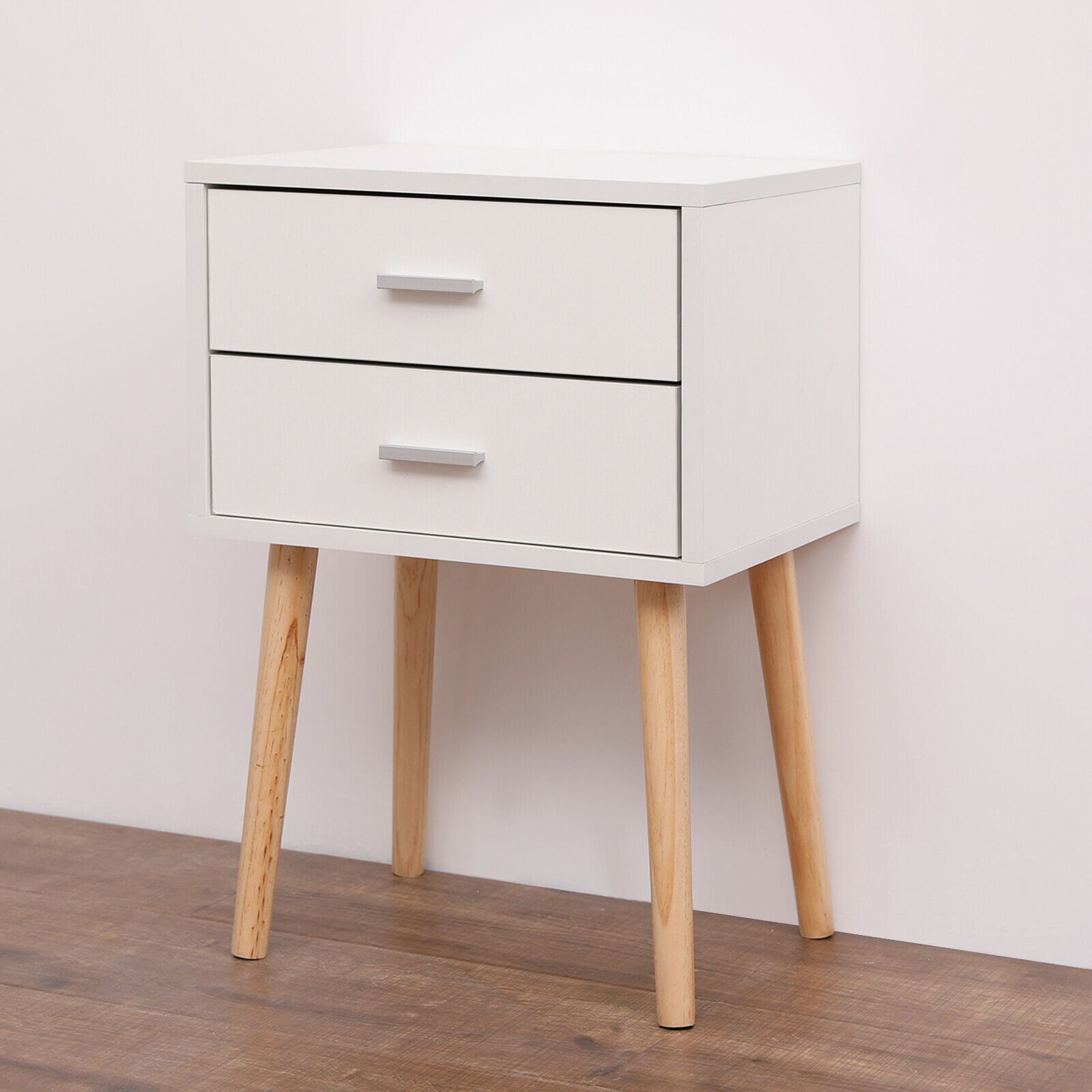 Modern Bedside Table with 2 Drawers Nightstand Storage Cabinet Bedroom White