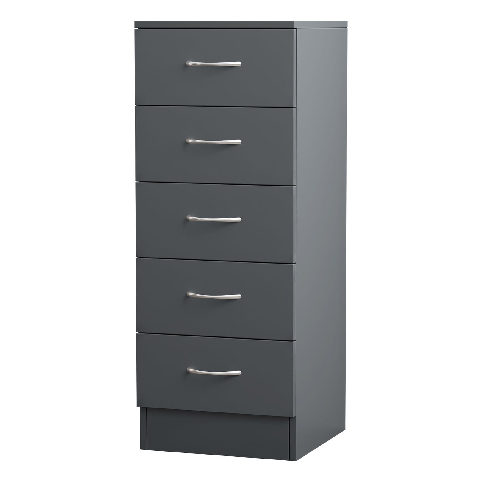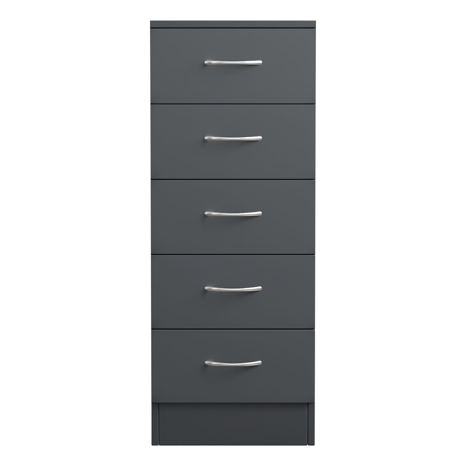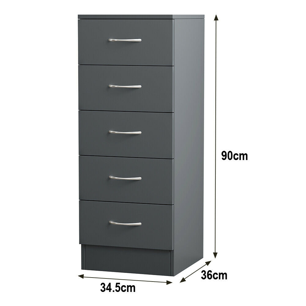 Modern Cabinet Grey Bedside Table Storage Tall Narrow Chest of 5 Drawer